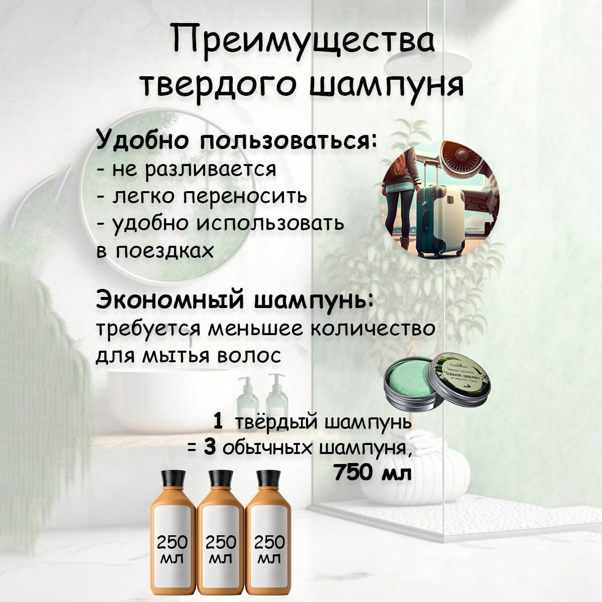 Твердый Шампунь GreenAura "Мята", для всех типов волос, глубокое очищение