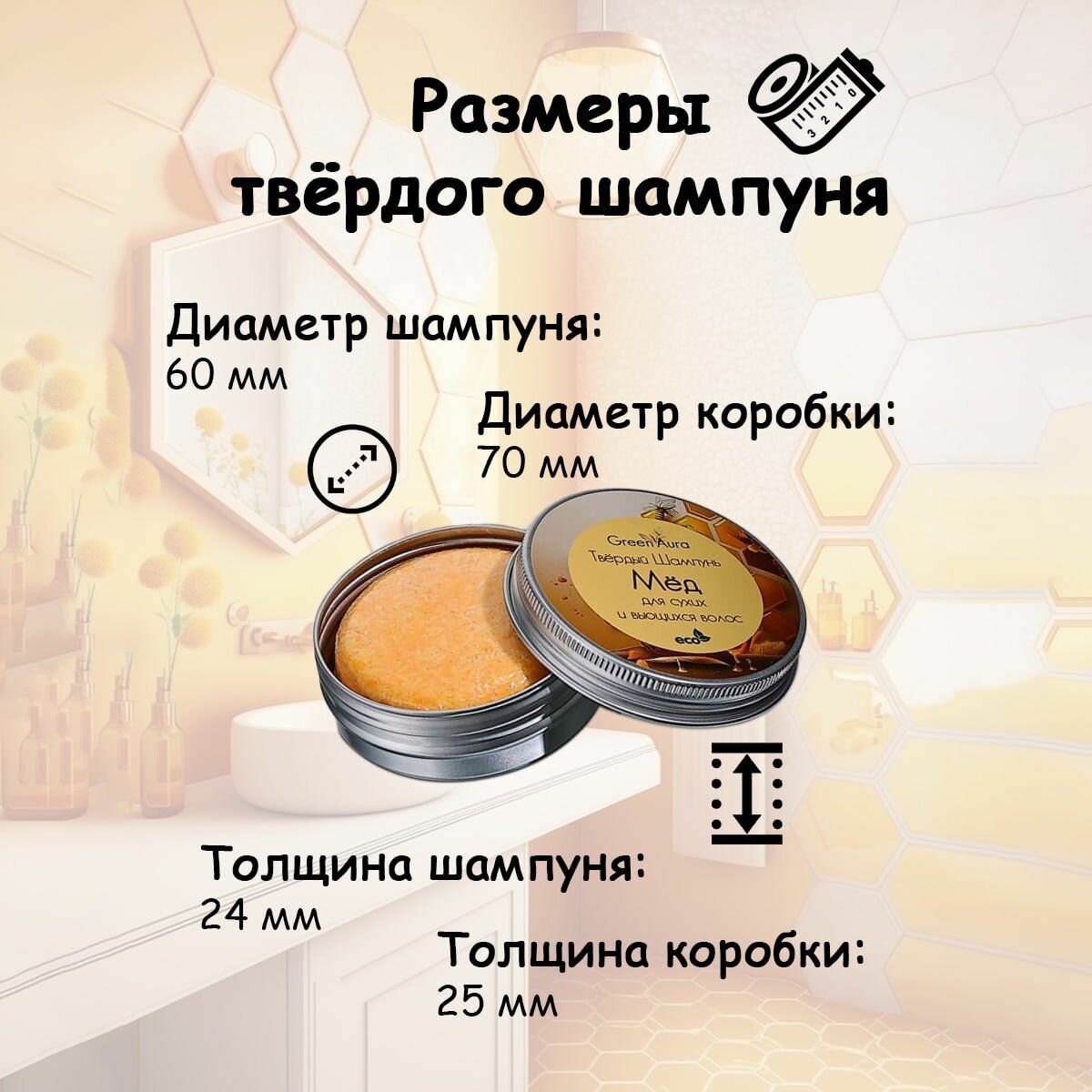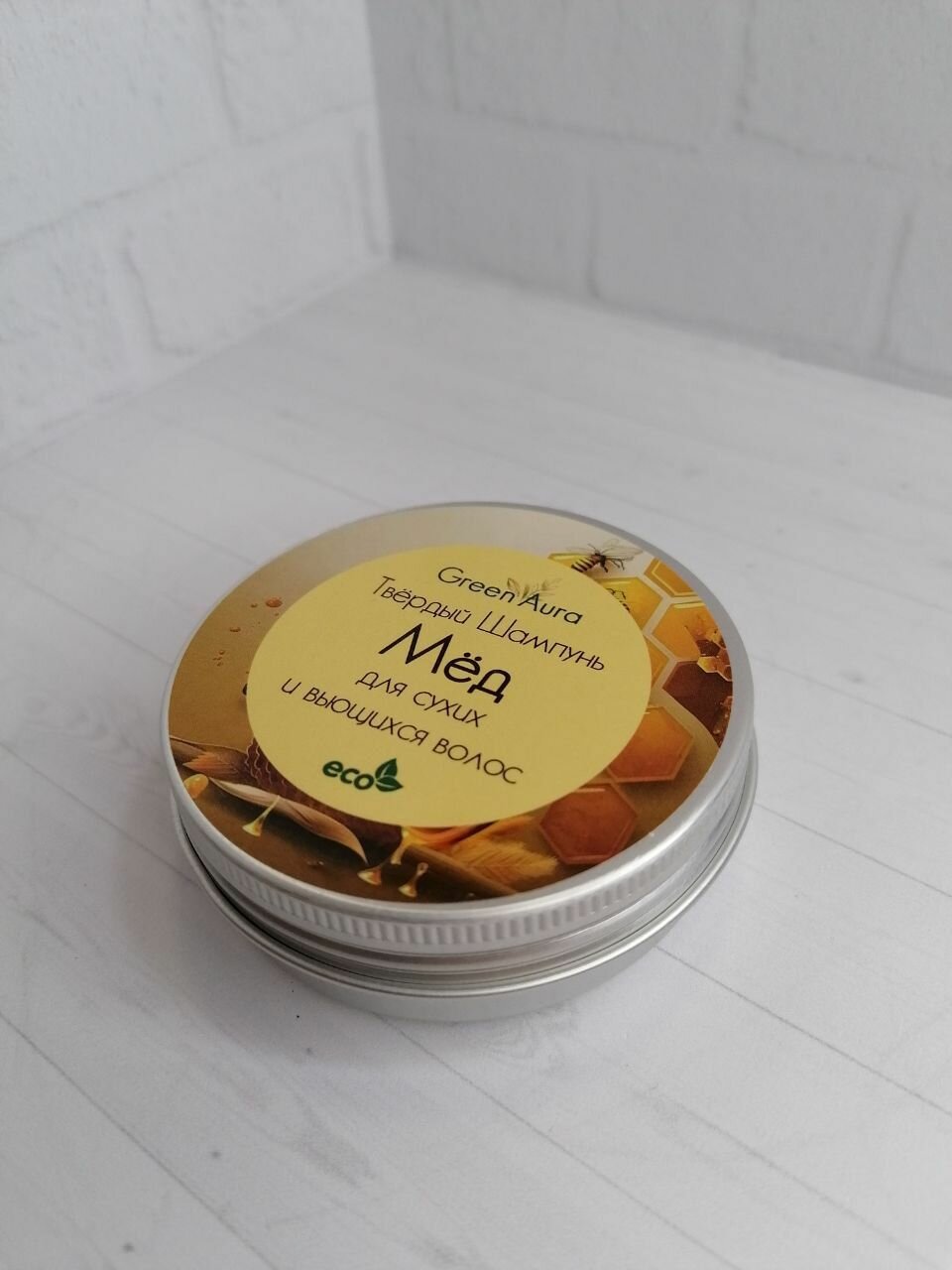 Женский твердый шампунь Мед для сухих и поврежденных волос, GreenAura