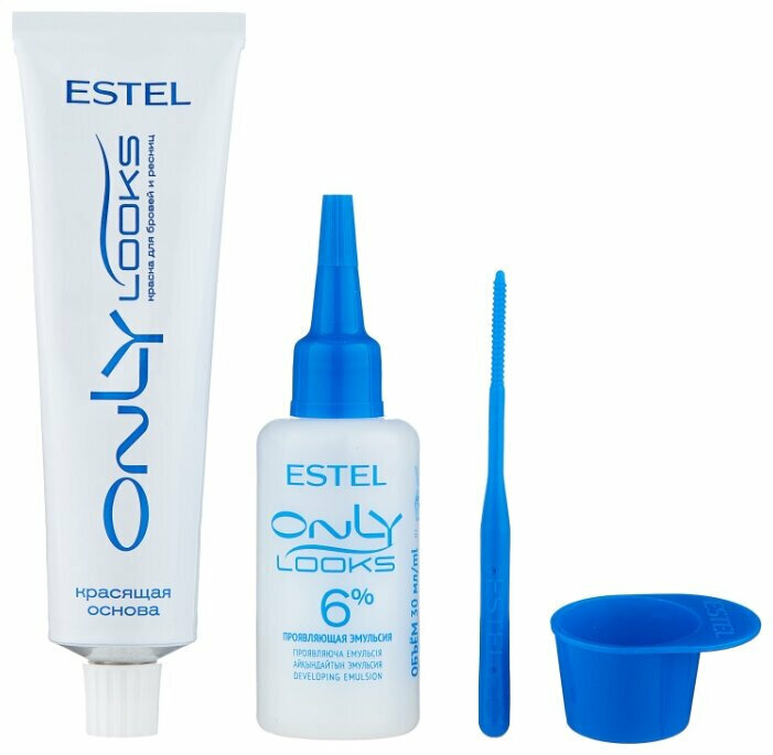 Estel краска для бровей и ресниц only looks (красящая основа 50 мл, проявляющая эмульсия 30 мл + мисочка + палочка), тон 603 иссиня-чёрный