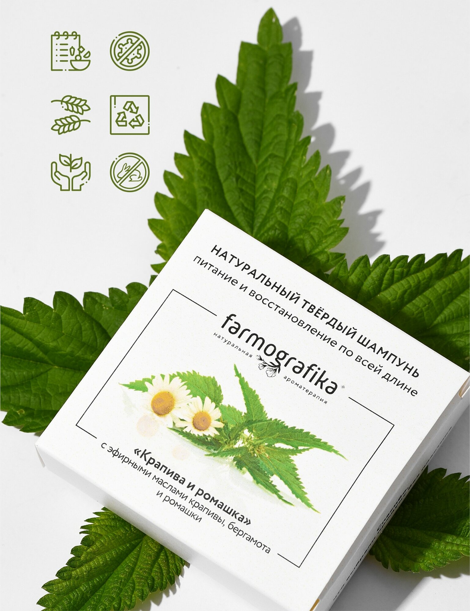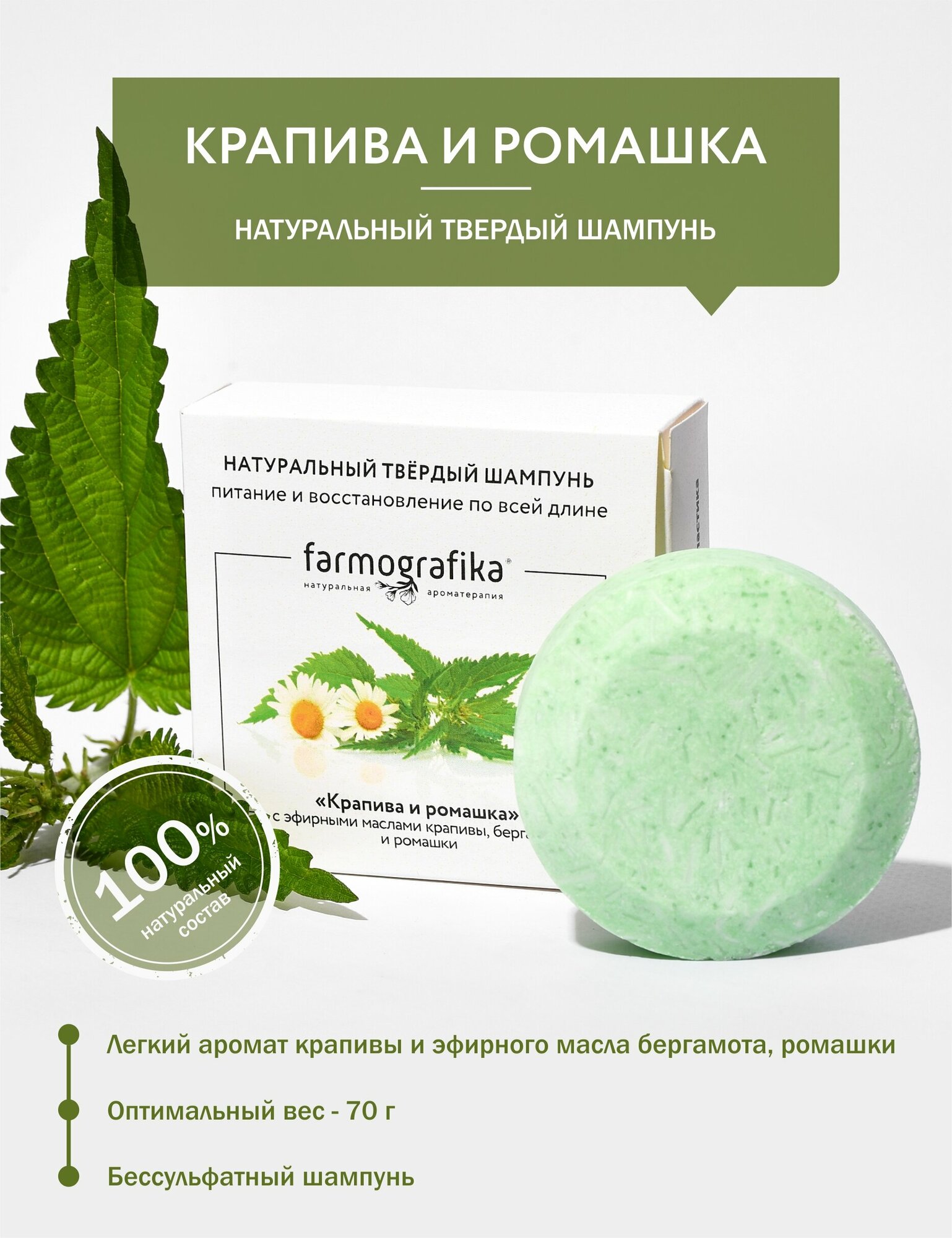 Купить Farmografika Твердый шампунь для волос питание и восстановление по всей длине Farmografika "Крапива и ромашка"