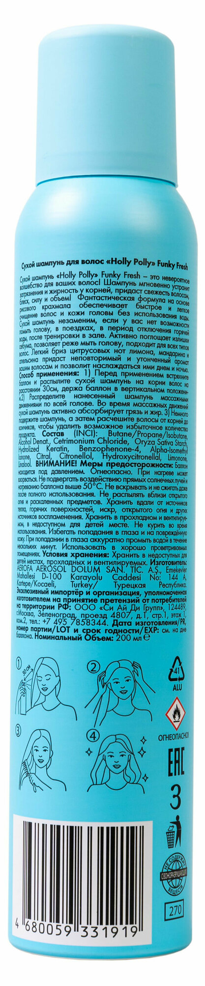 HOLLY POLLY Шампунь сухой для волос Funky Fresh, 200 мл