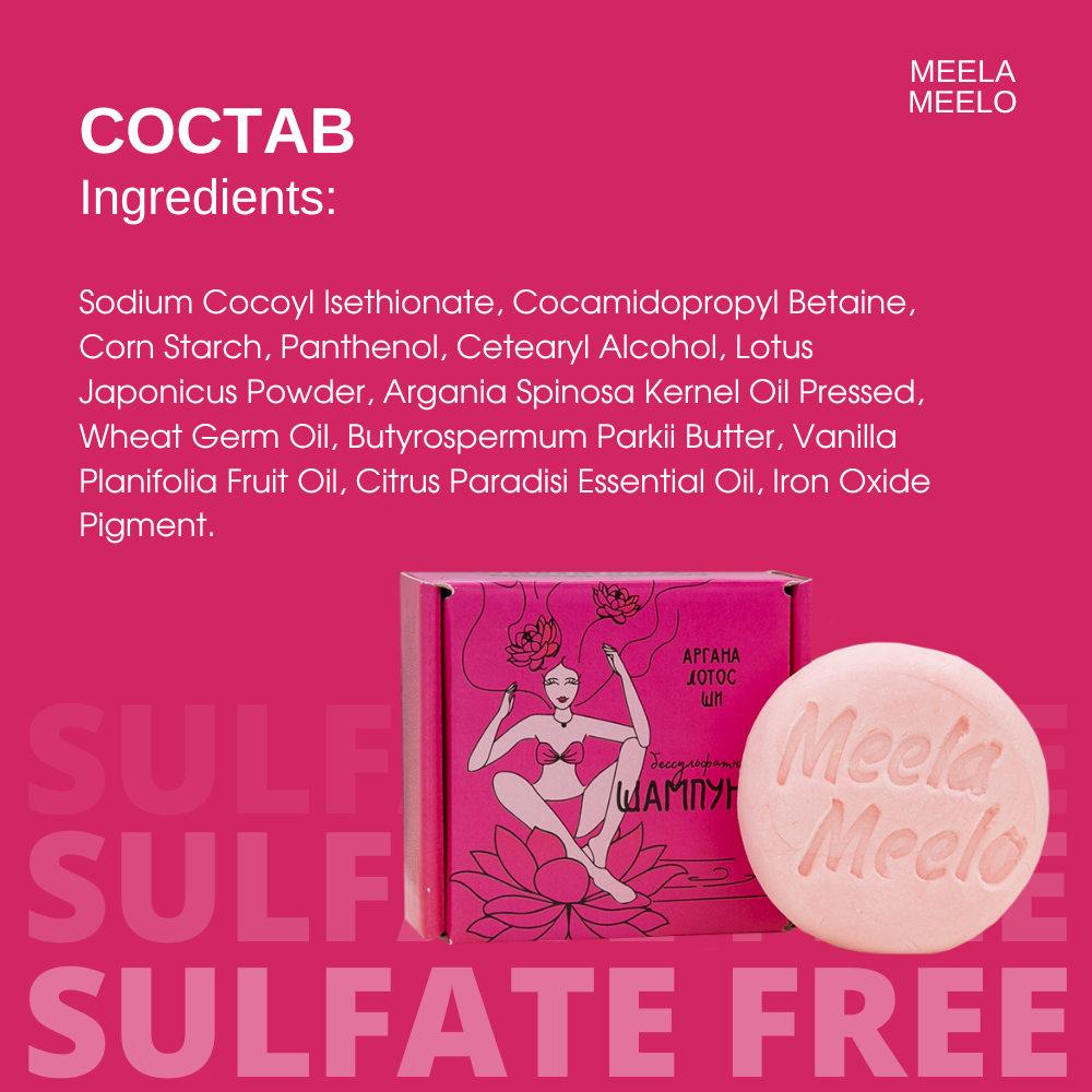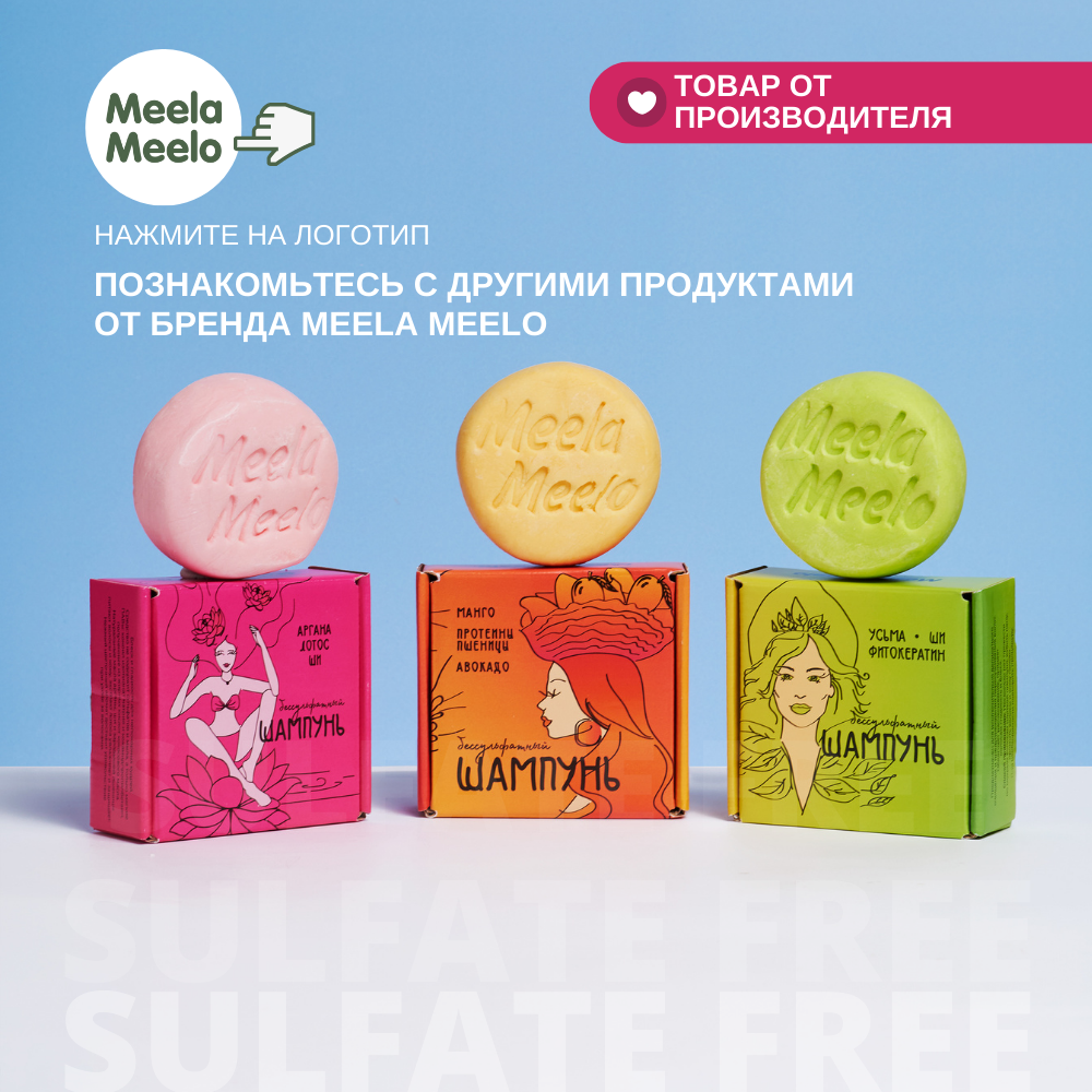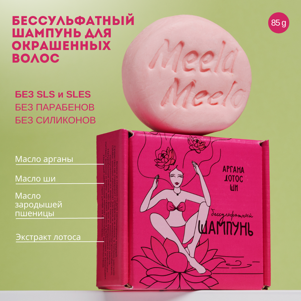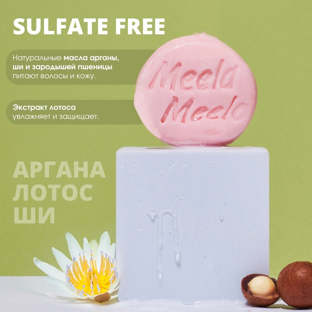 Бессульфатный твердый шампунь Meela Meelo "Аргана, лотос, ши" для окрашенных волос, 85 гр. интересное: