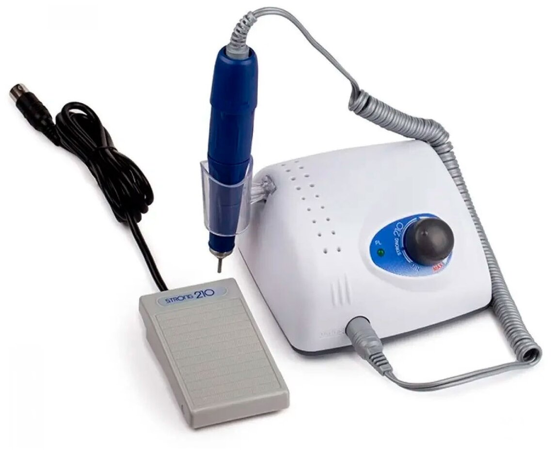 Аппарат для маникюра и педикюра Strong 210/105L в коробке, 35000 об/мин, белый/синий