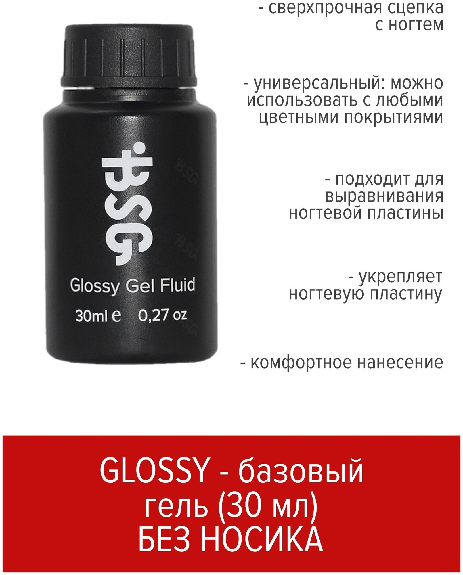 BSG Универсальный базовый гель Glossy Fluid 50 мл (без кисточки с носиком)