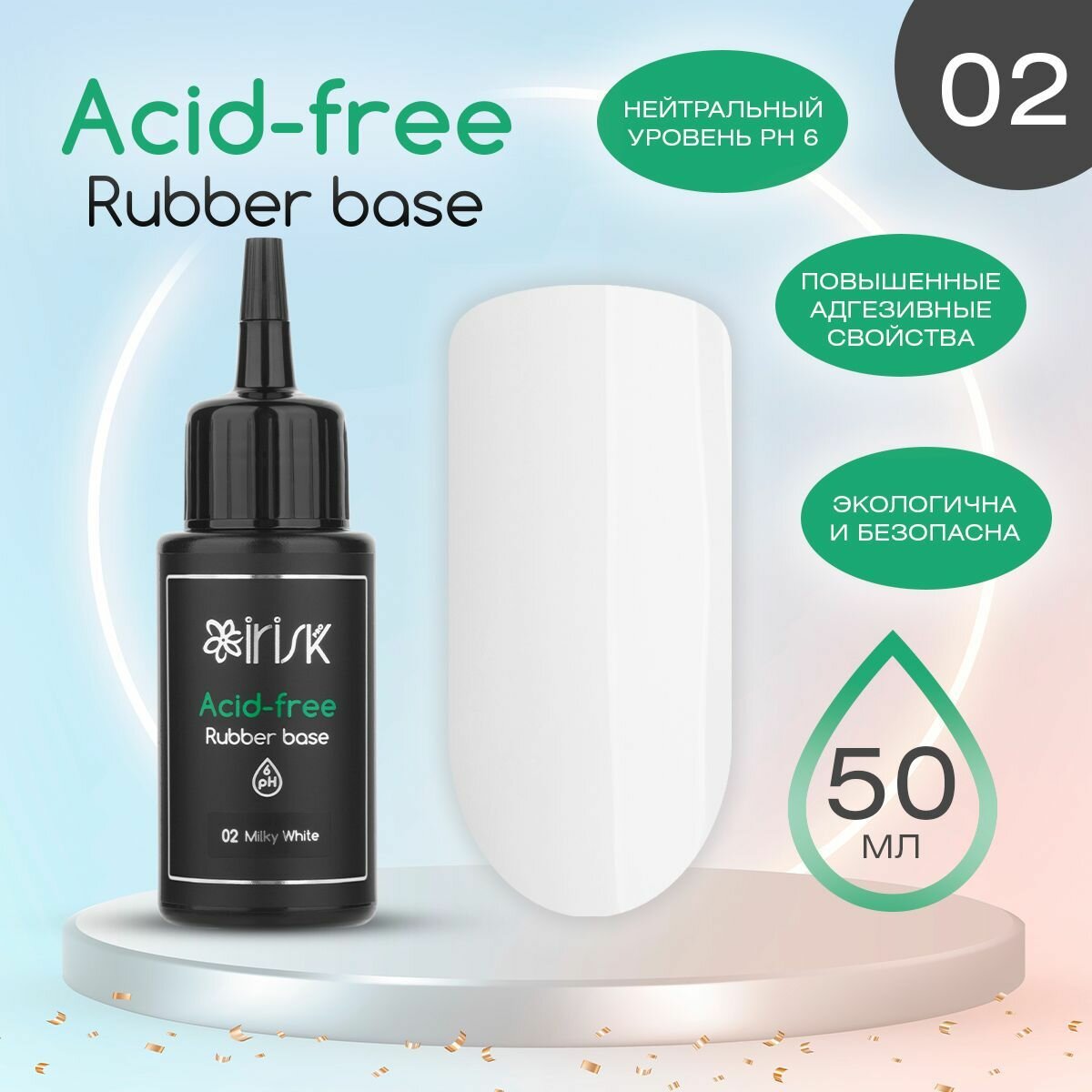 Купить IRISK База для гель лака каучуковая, бескислотная Acid-free Rubber Base, № 02 Milky White, 50 мл.