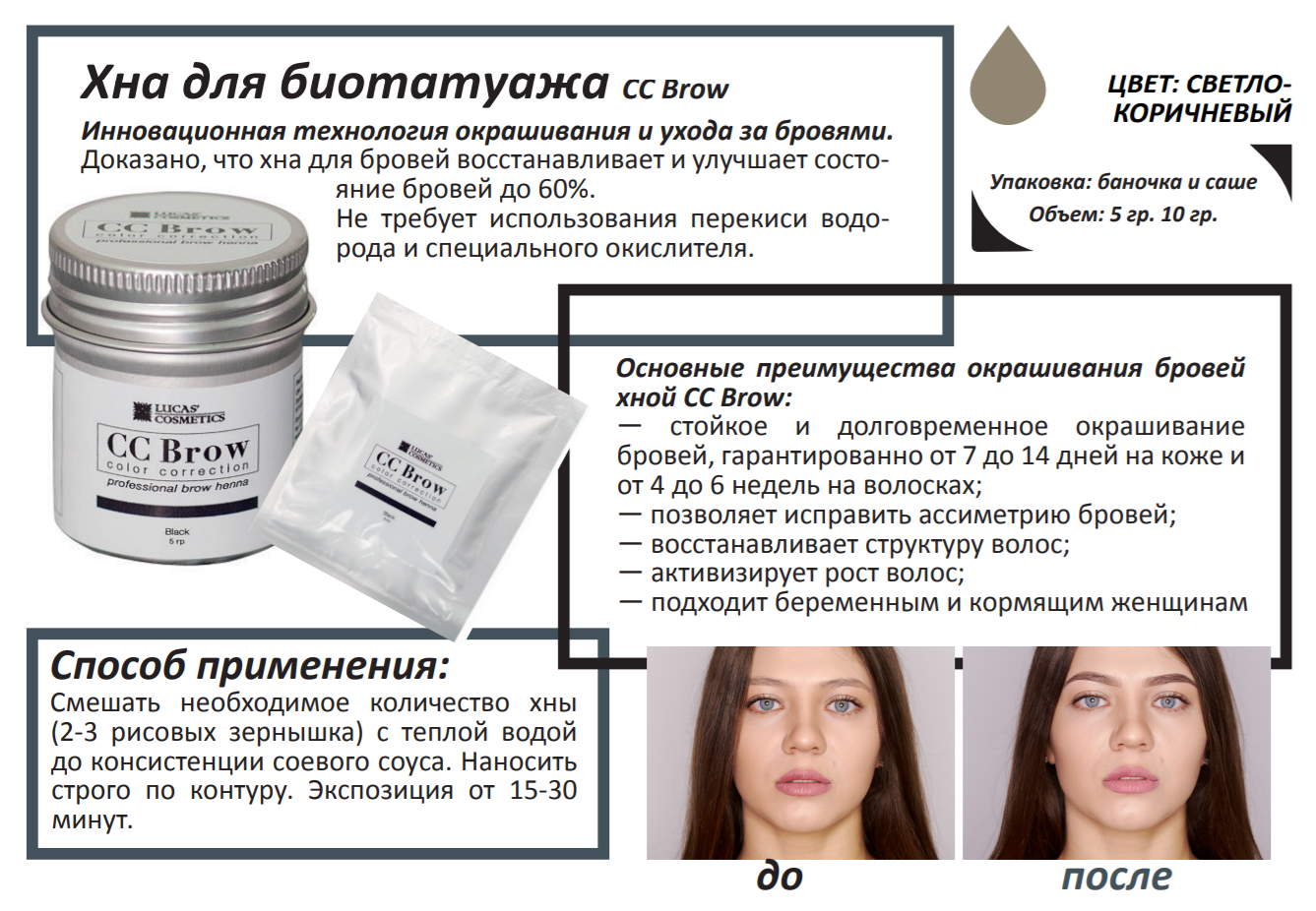 LUCAS Хна для бровей CC Brow (light brown) в саше (светло-коричневый), 5 г