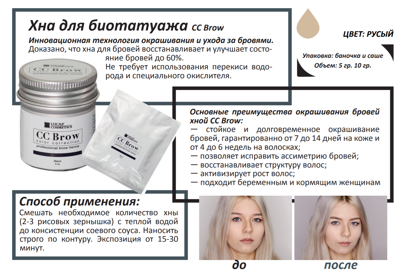 CC Brow Хна для бровей (blonde) в саше (русый), 5 гр