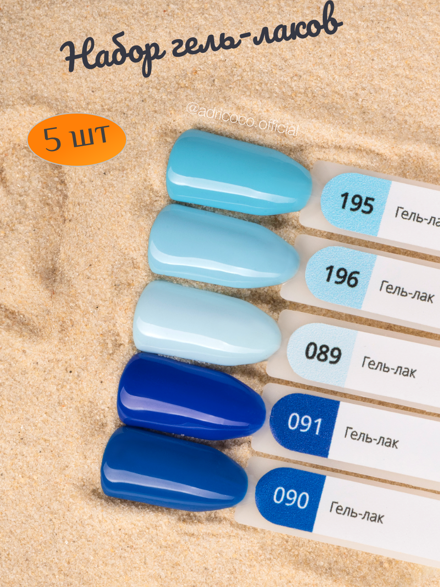 Купить Набор цветных гель-лаков 5 шт для маникюра Adricoco №89,90,91,195,196, шеллак голубой, синий