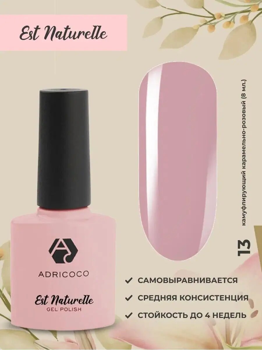 Гель-лак ADRICOCO камуфлирующий Est Naturelle №13 карамельно-розовый 8 мл