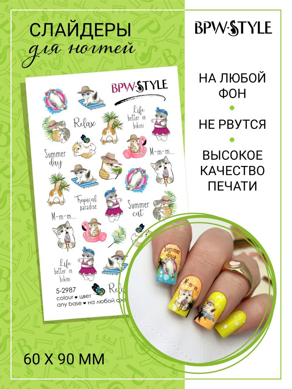 Наклейки для ногтей BPW Style летние коты интересное: