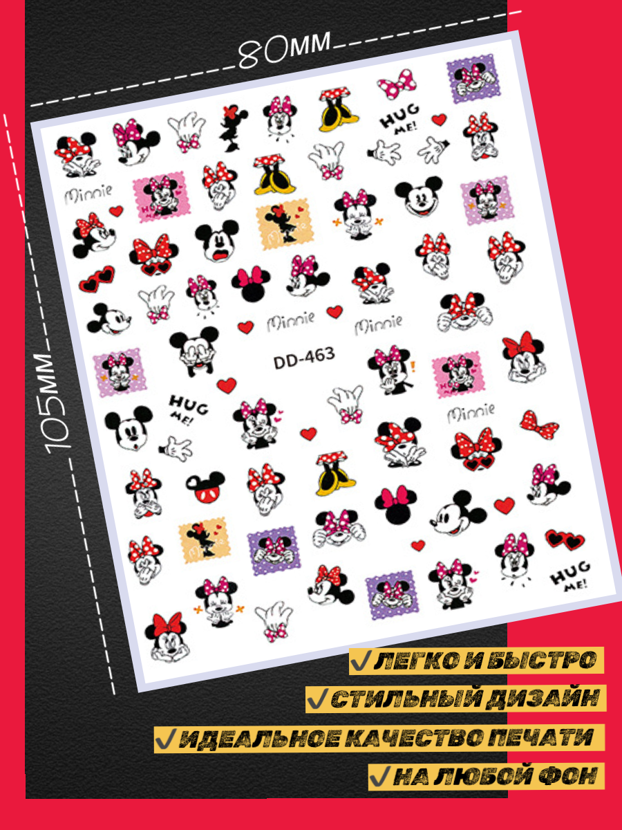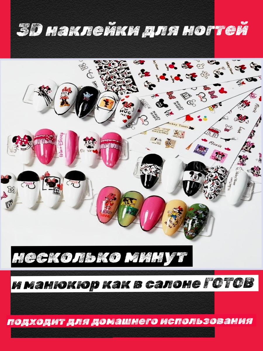 "3D стикеры для ногтей" - слайдер-дизайн наклейки Минни и Микки от Time Nails интересное: