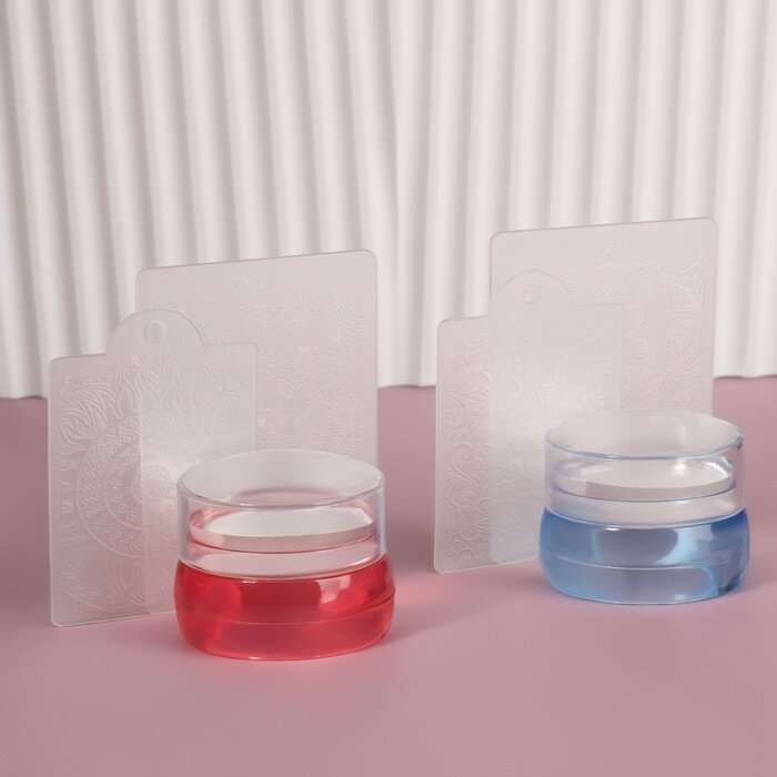 Купить Набор для стемпинга, 3 предмета: штампик с крышкой, 2 скребка-подложки, цвет микс