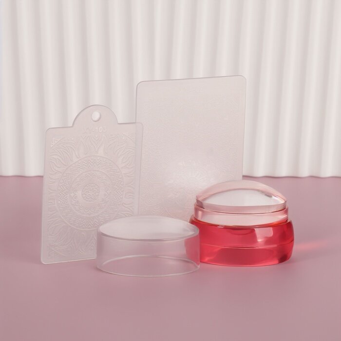 Набор для стемпинга, 3 предмета: штампик с крышкой, 2 скребка-подложки, цвет микс интересное: