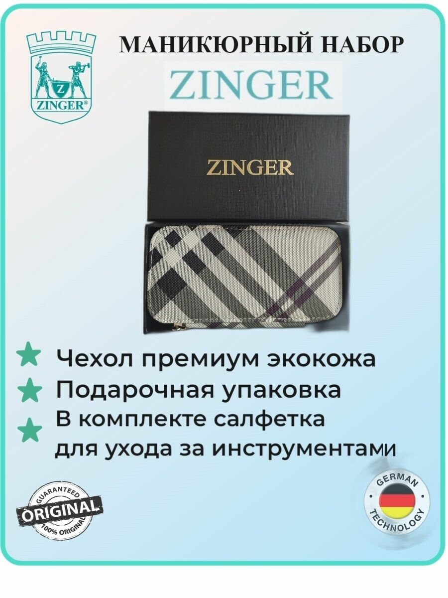 Маникюрный набор Zinger 7105, 7 предметов, серебристый/коричневый клетка