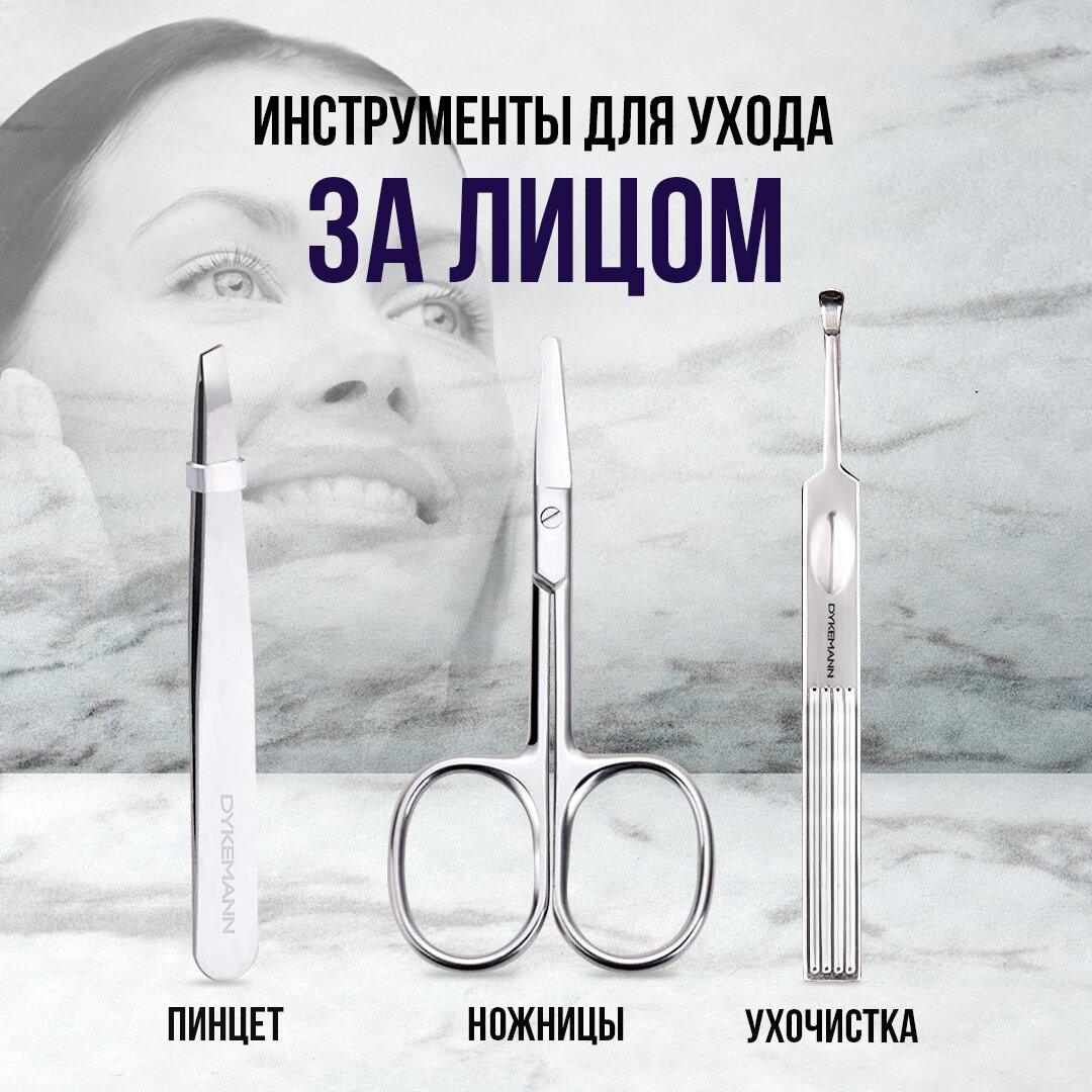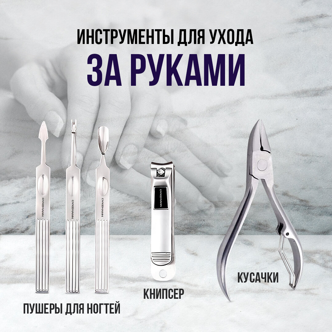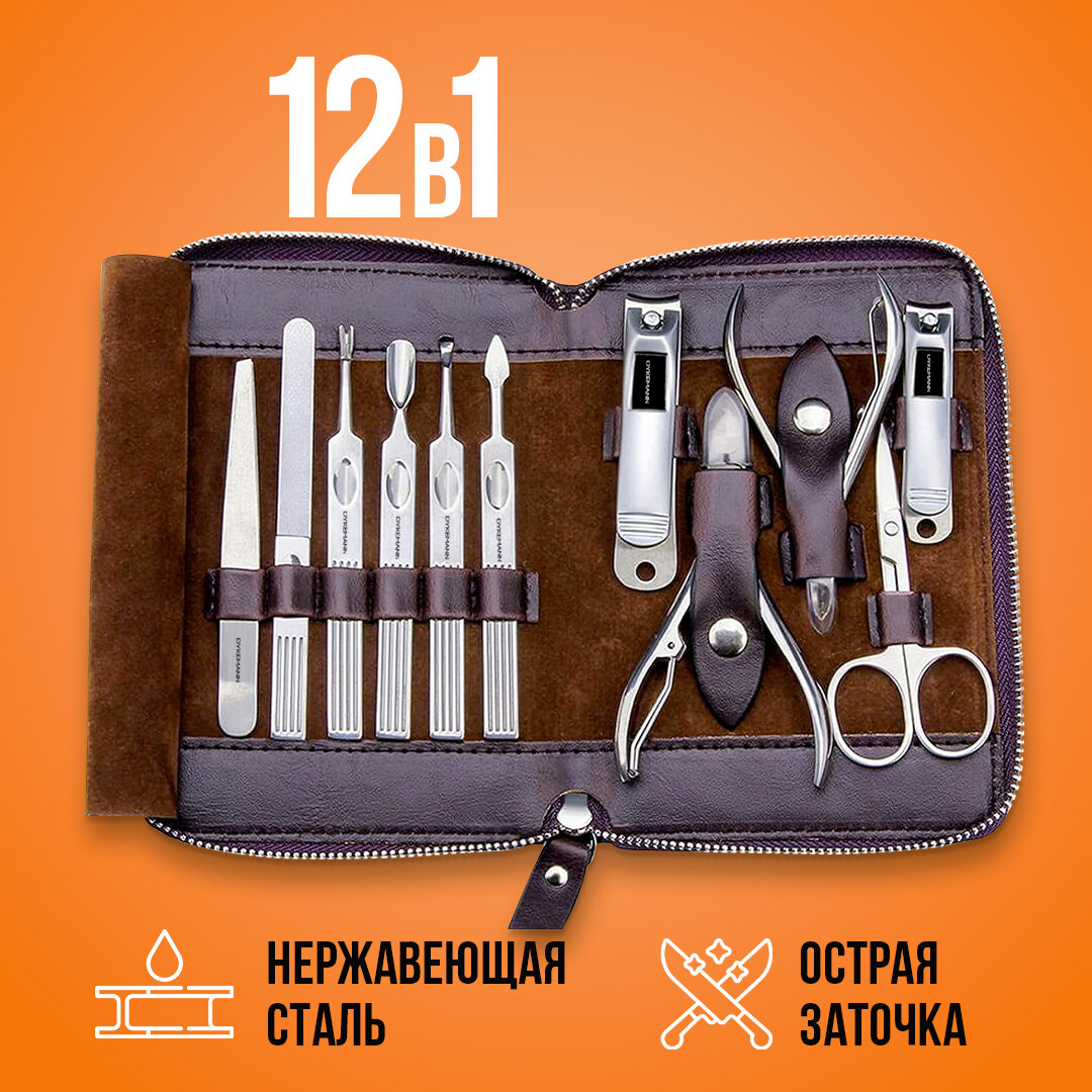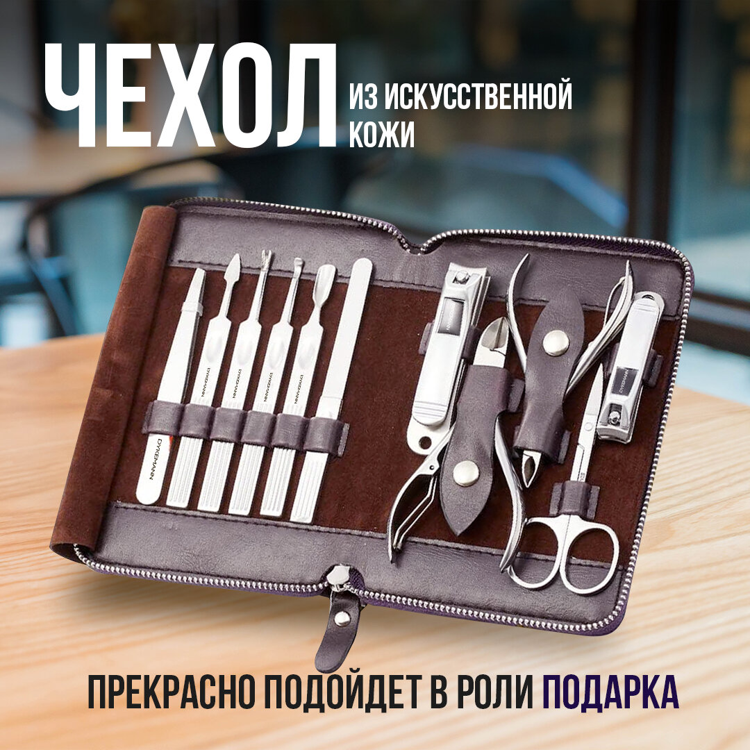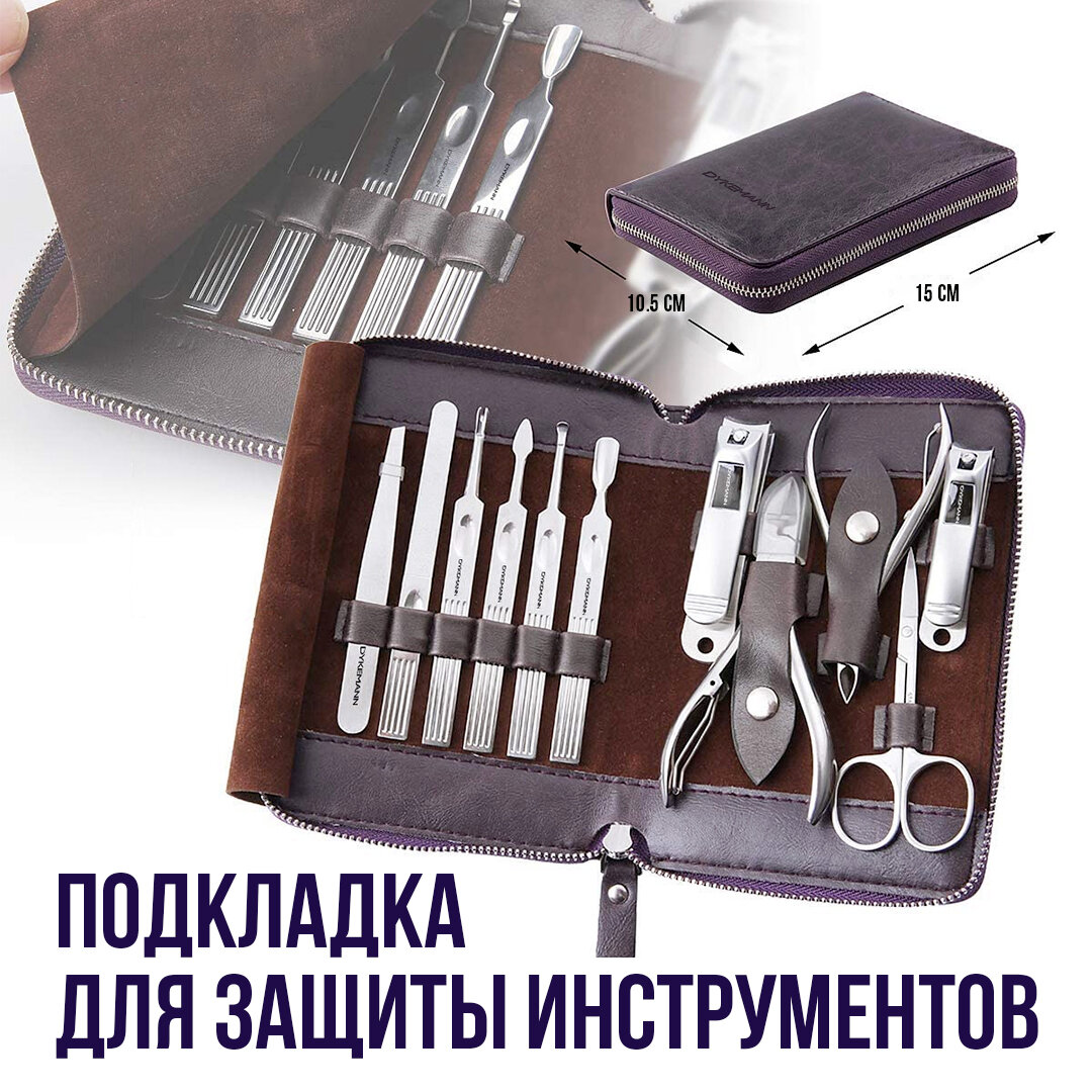Маникюрный набор для маникюра и педикюра 12в1: пинцет, ножницы, кусачки, книпсер, пушер, триммер для кутикулы, чехол Dykemann Nagelset FL-12Purple интересное:
