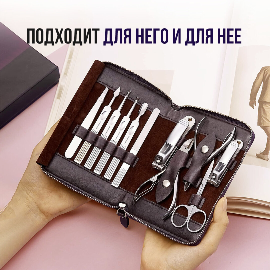 | Состав набора | книпсер, кусачки, кусачки для кутикулы, кусачки для маникюра, кусачки для педикюра, ножницы, ножницы для кутикулы, ножницы для ногтей, ножницы для педикюра, пилка, пилка педикюрная, пинцет, пушер для кутикулы, триммер |