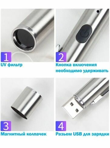 Ультрафиолетовый фонарик для маникюра и сушки гель-лака с USB зарядкой / Портативная УФ лампа для маникюра интересное: