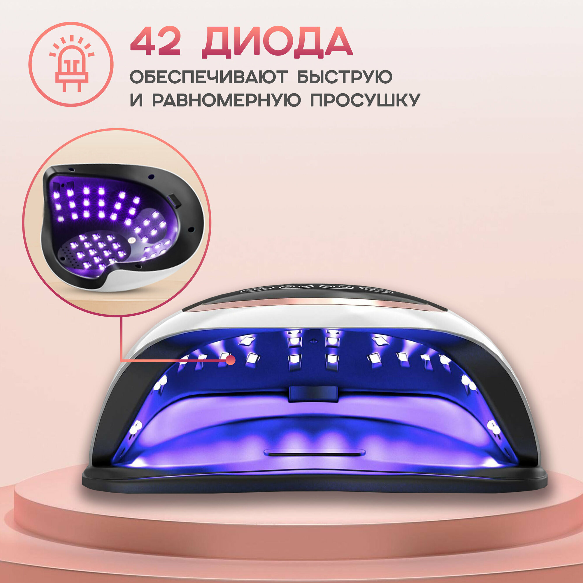 Лампа для маникюра и педикюра 168 Вт для сушки для гель лака, шеллака профессиональная/настольная/сушка для ногтей Dykemann Sonnenschein KS-42 интересное: