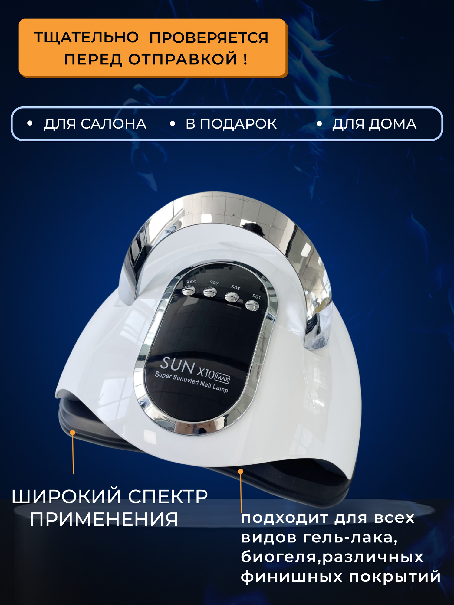 SUN Лампа для сушки ногтей X, 54 Вт, LED-UV белый + Пилочки для маникюра 10 шт / Набор для маникюра Лампа + пилочки для ногтей