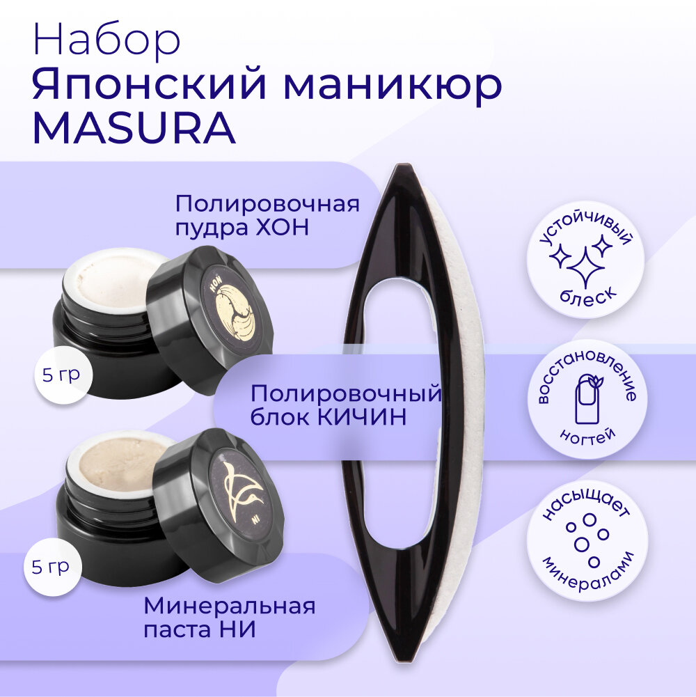Купить Набор MASURA для японского маникюра Паста NI, Полировочная пудра HON, Полировочный блок Кичин