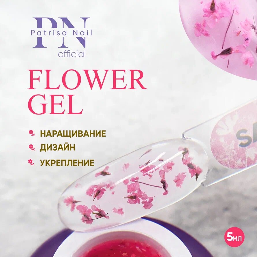 Гель с сухоцветами для ногтей Flower Gel Sakura от Patrisa Nail, 5 грамм