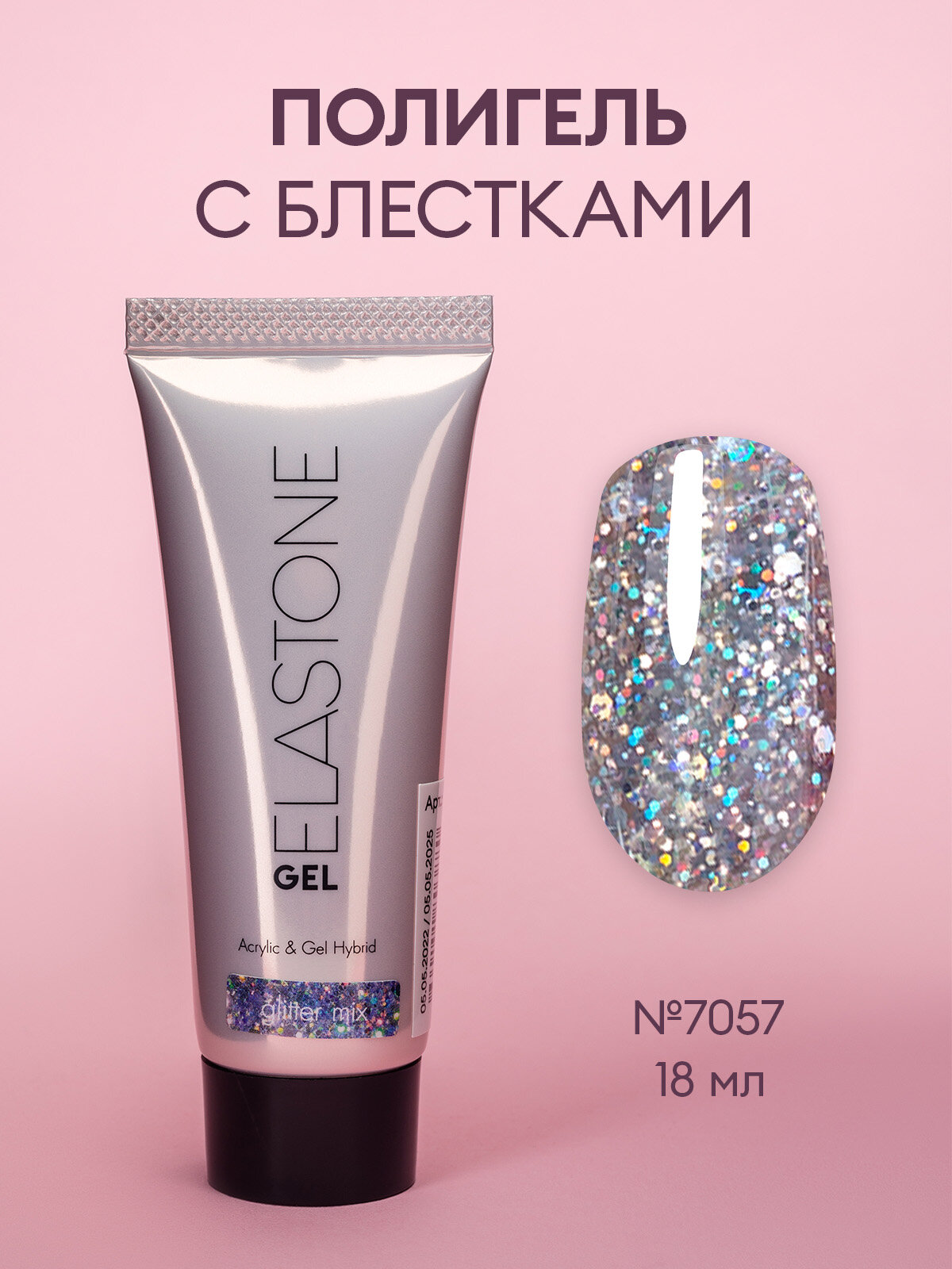 Купить Гибрид акрила и геля/акригель/полигель для наращивания ELASTONE GEL /полигель с блестками, 18 мл №7057