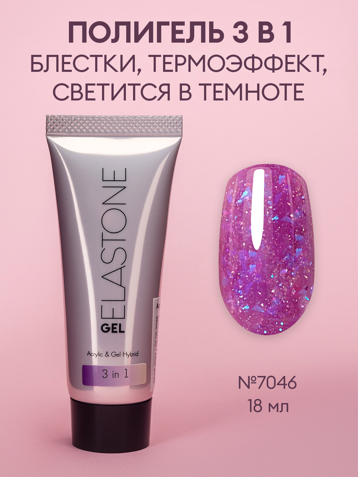 Купить Гибрид акрила и геля/акригель/полигель для наращивания ELASTONE GEL/полигель термоэффект (3 в 1), 18 мл №7046