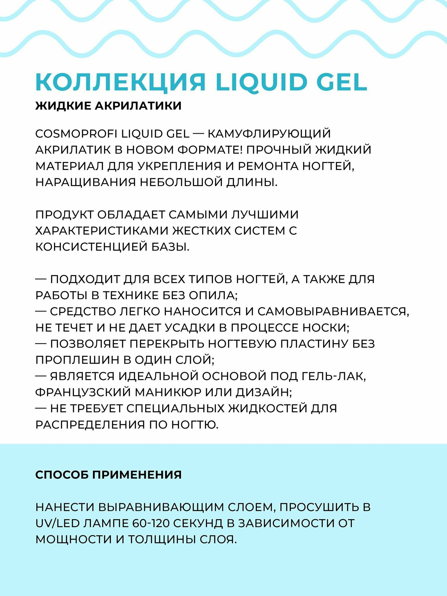 Камуфлирующий жидкий акрилатик Cosmoprofi Liquid Gel № 10 - 12 мл