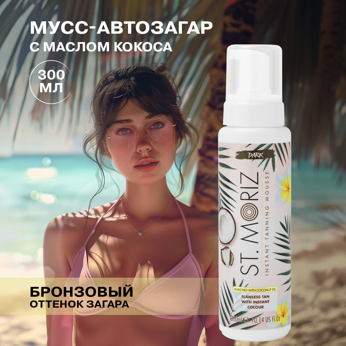 St.Moriz Автозагар для тела и лица мусс тонирующий с маслом Кокоса (темный оттенок), 300 мл интересное: