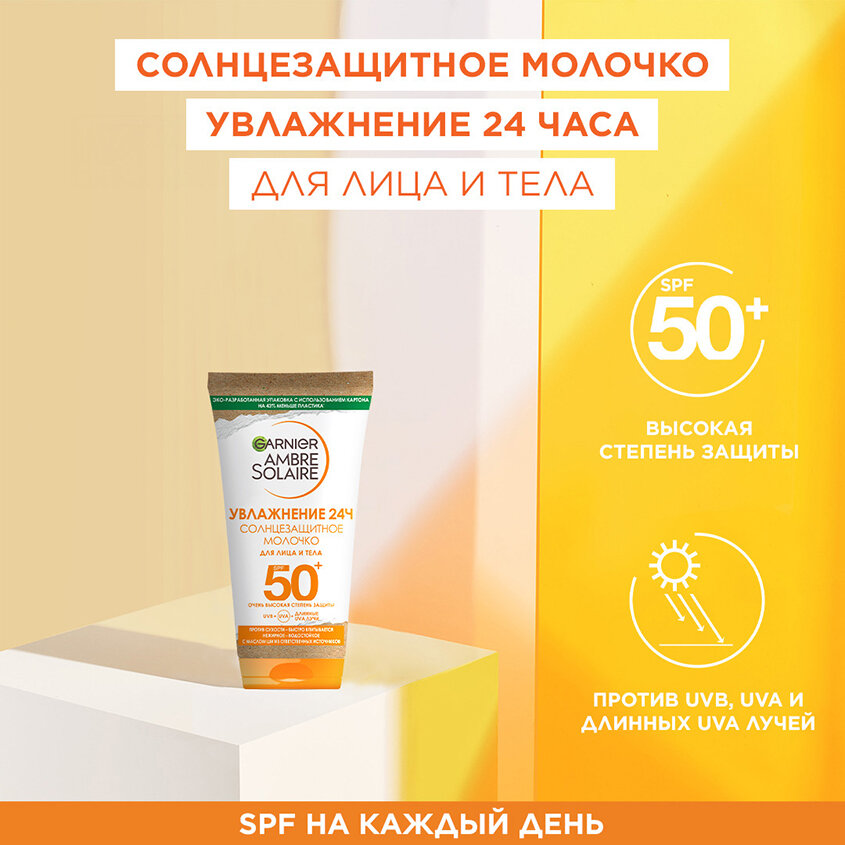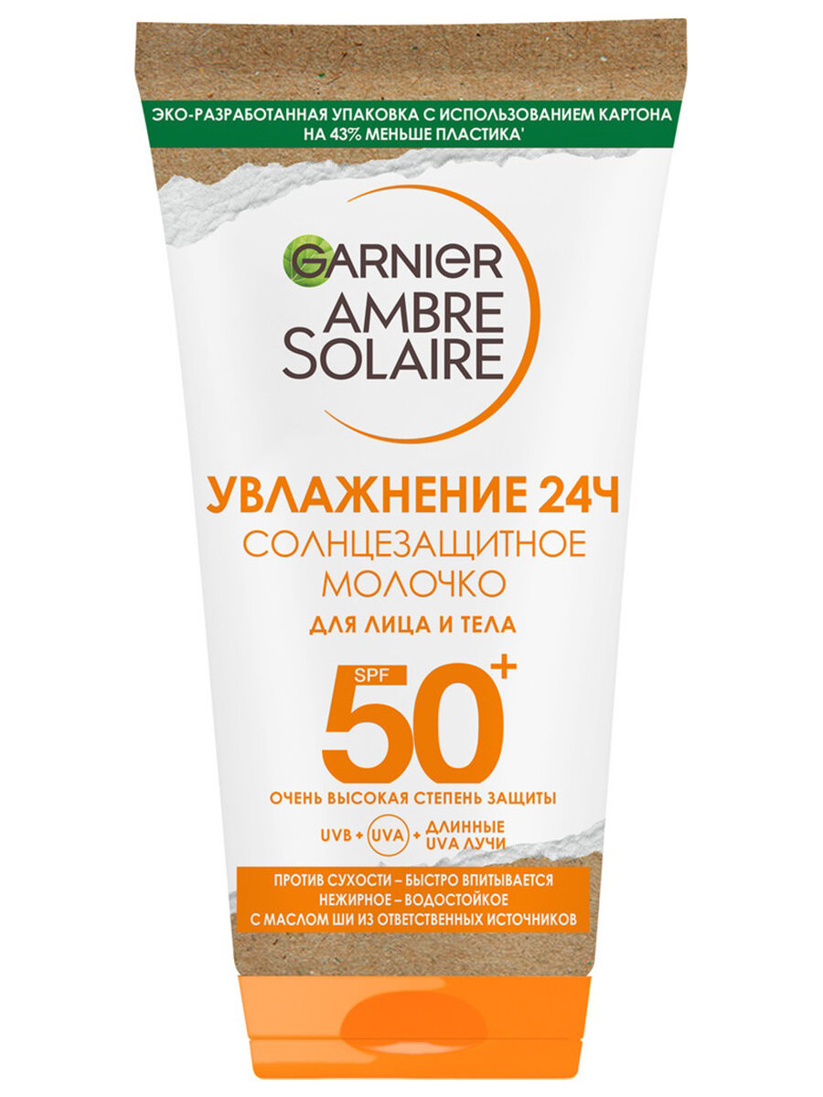 Купить GARNIER Солнцезащитное молочко для лица и тела, с маслом ши, SPF 50+ Ambre Solaire