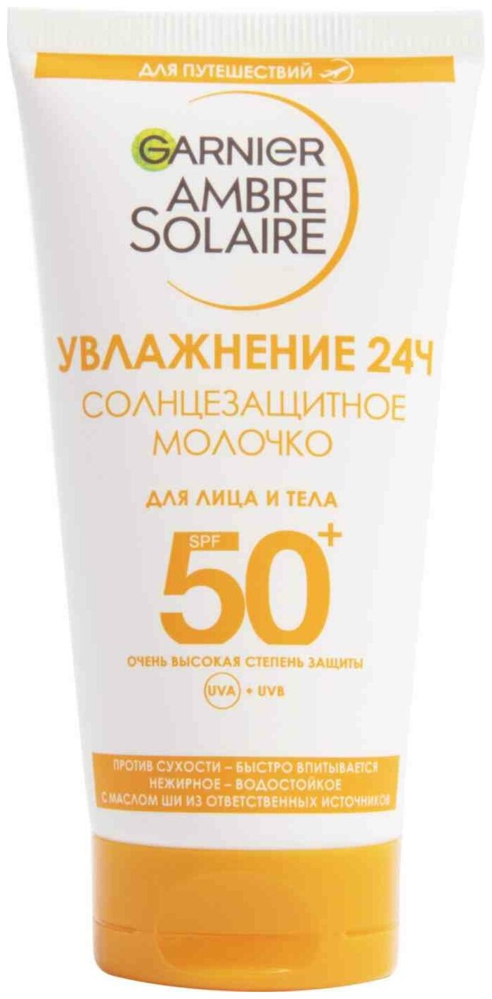 Garnier Солнцезащитное молочко для лица и тела Ambre Solaire, SPF 50+, водостойкое, нежирное, с маслом ши, 50 мл.