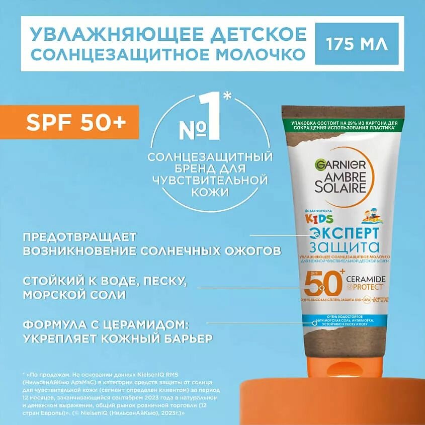 Солнцезащитное молочко Garnier легкое гипоаллергенное Ambre Solaire водостойкое SPF50+ 175мл интересное: