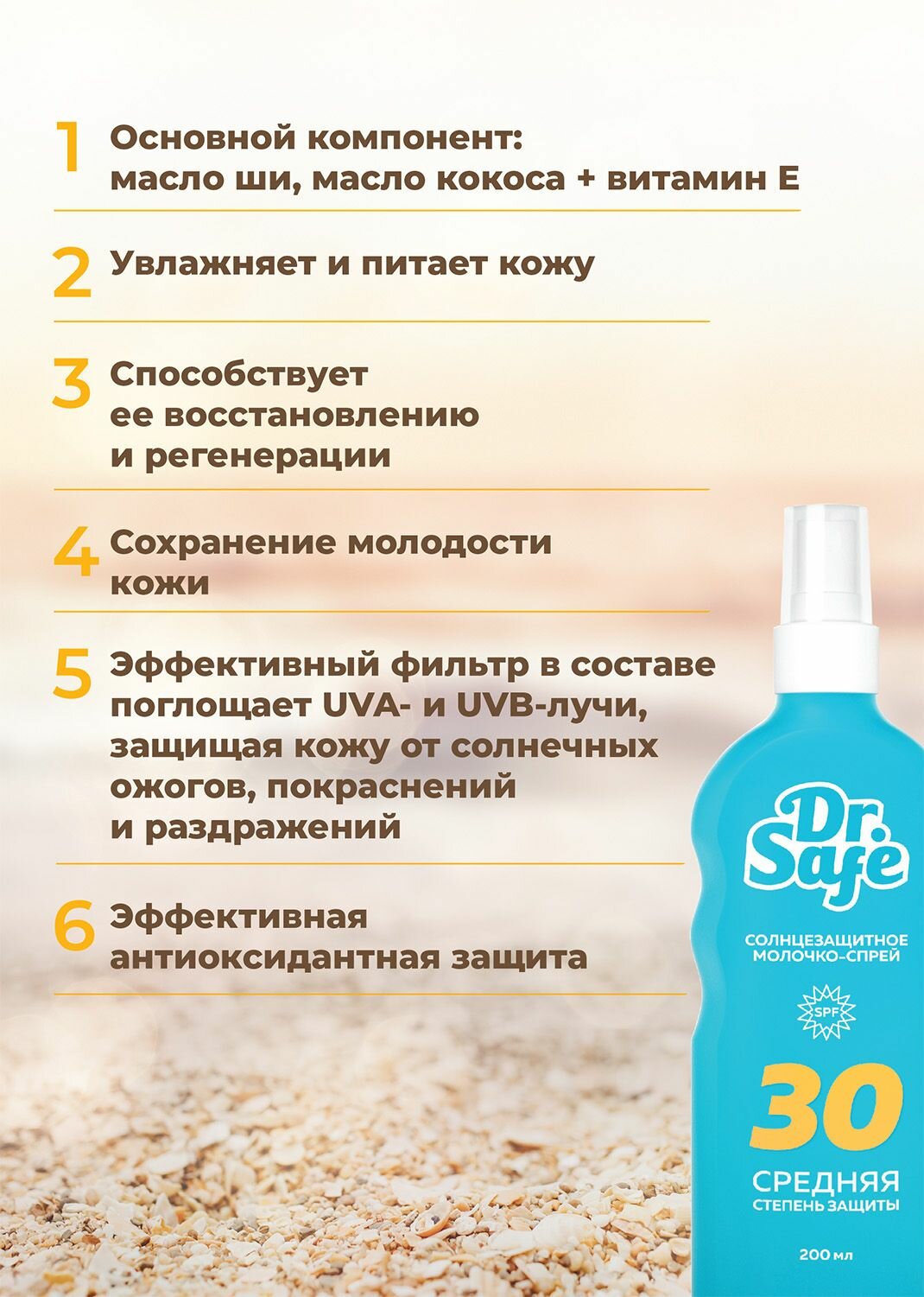 Cпрей cолнцезащитный DR.Safe SPF 30 200мл интересное: