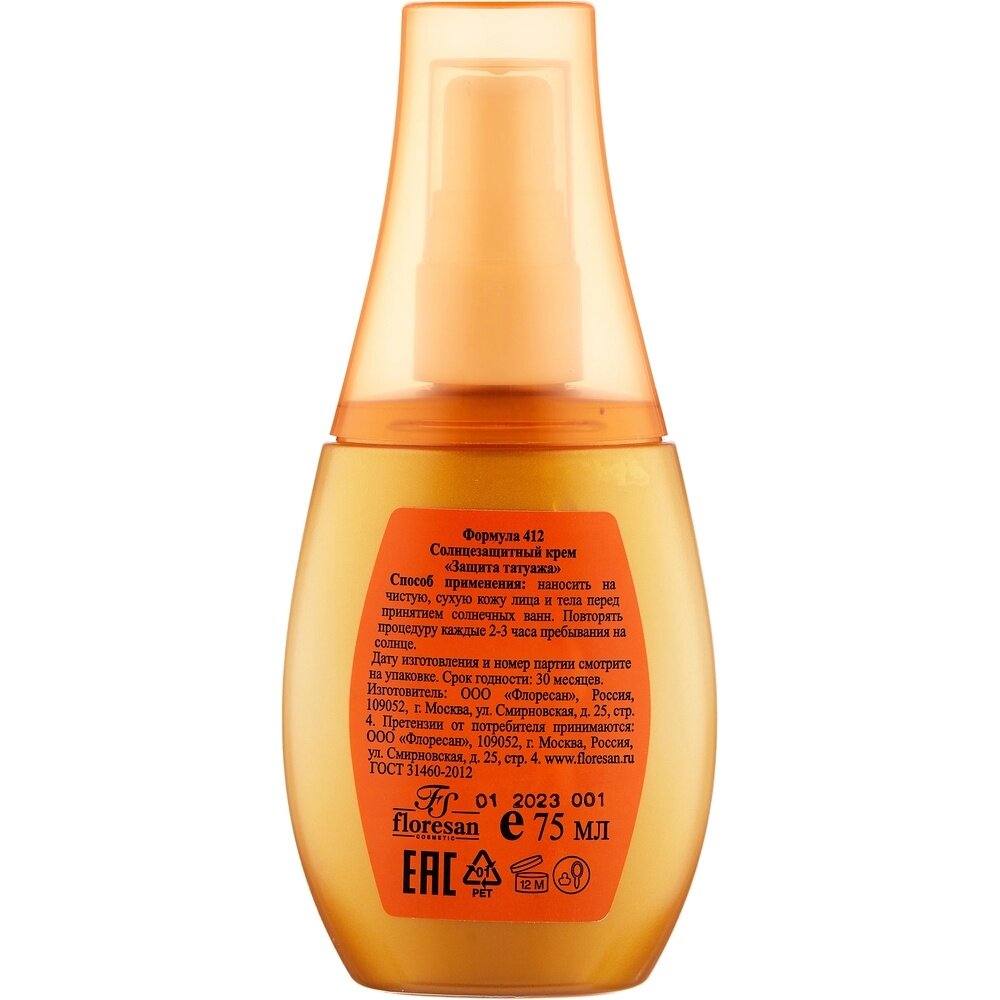 "Floresan Beauty Sun Защита Татуажа" солнцезащитный крем 75мл