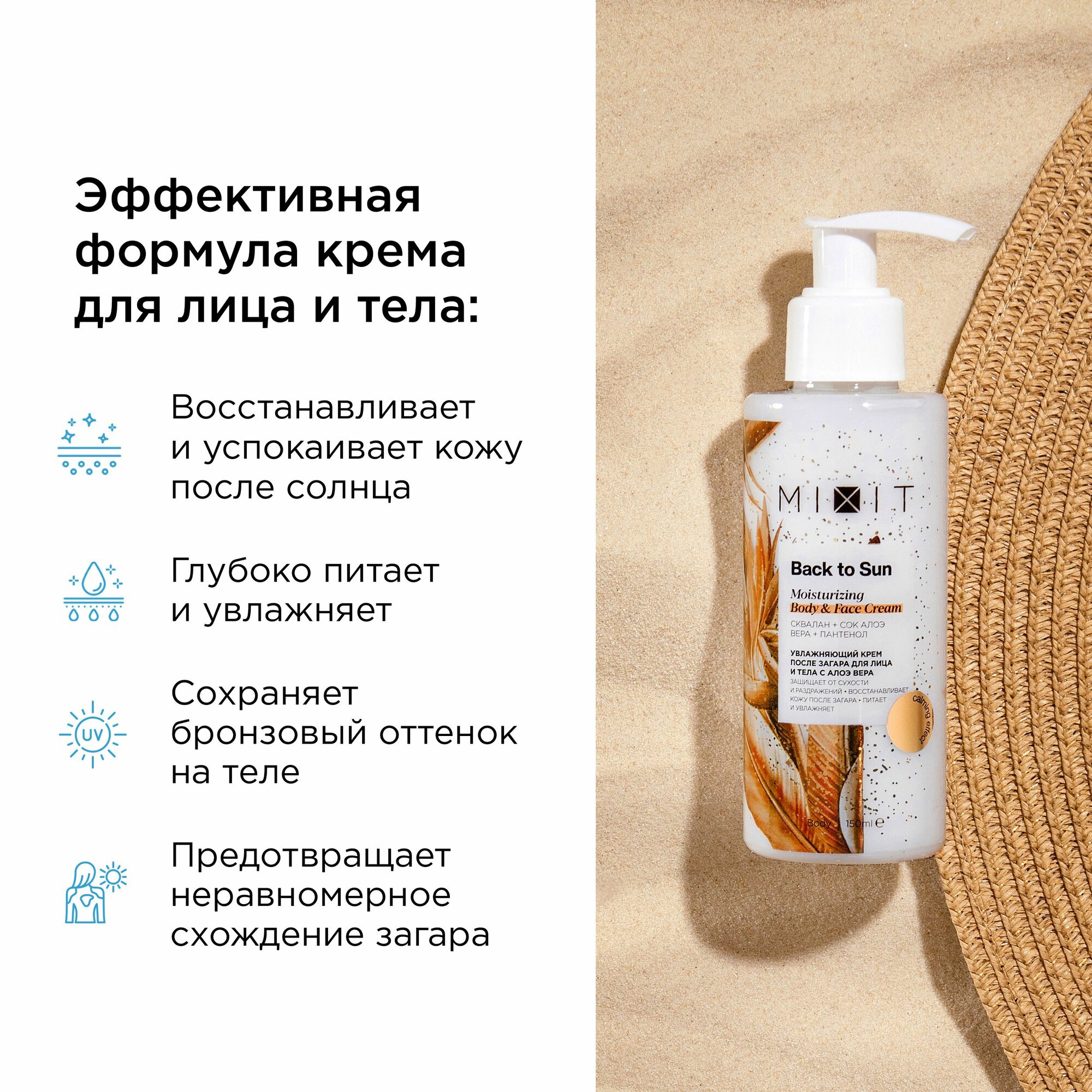Крем для лица и тела после загара MIXIT "BACK TO SUN" защитный, увлажняющий, с пантенолом и алоэ вера, 150 мл интересное: