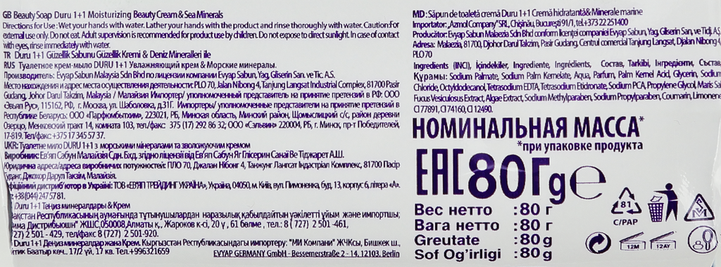 Мыло Duru Морские минералы 80г, 1+1, Малайзия