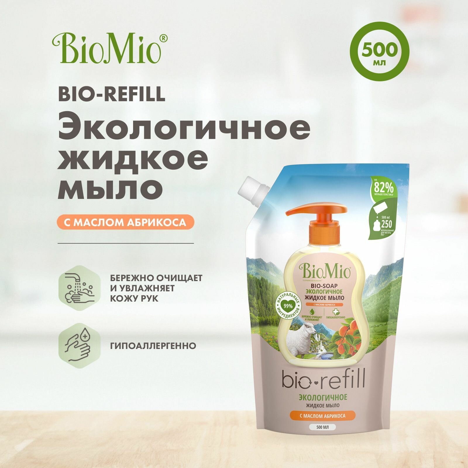 Экологичное жидкое мыло BioMio Bio-Soap с маслом абрикоса, сменный блок, 500 мл