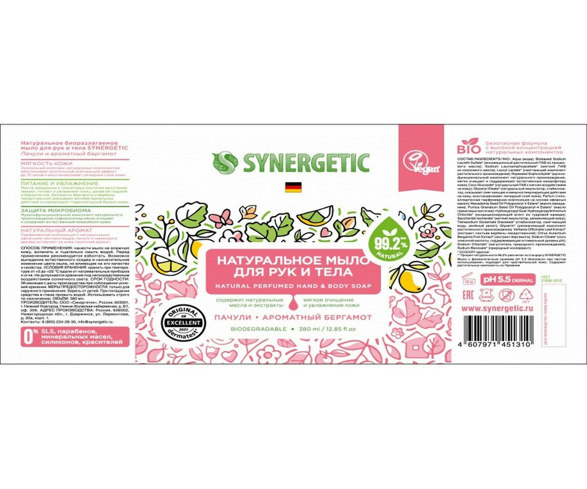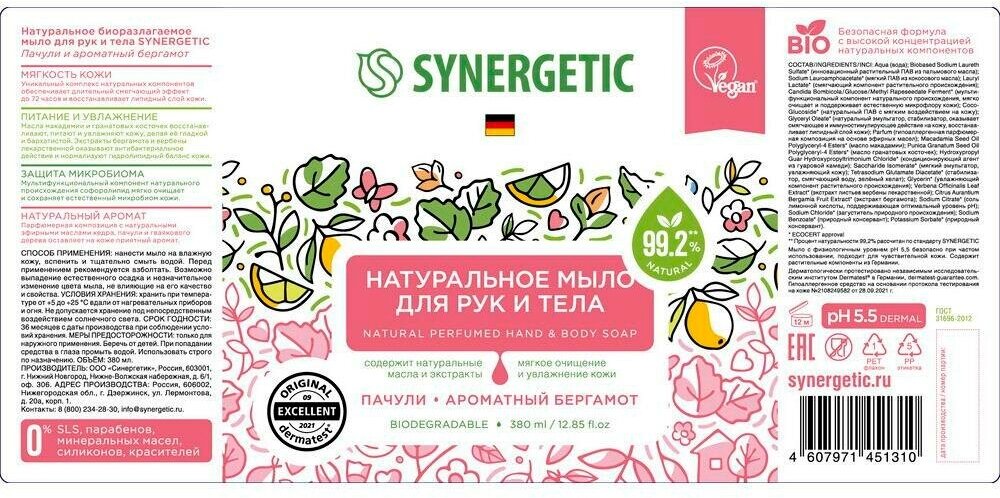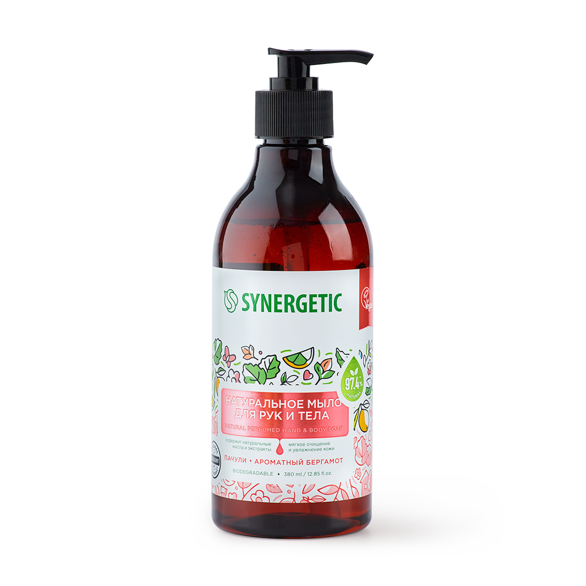 Жидкое мыло для рук и тела Synergetic Пачули и ароматный бергамот, 380 мл интересное: