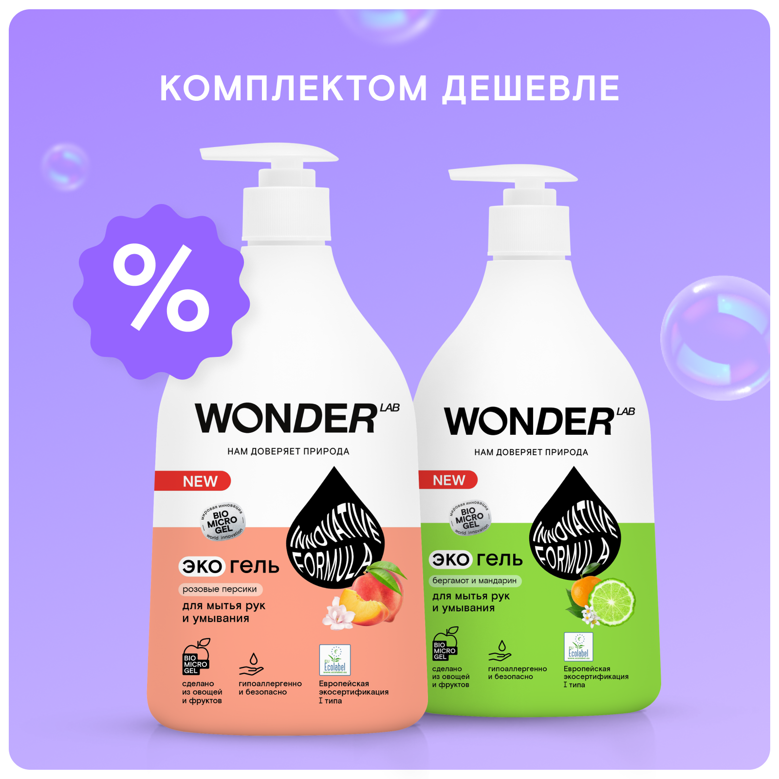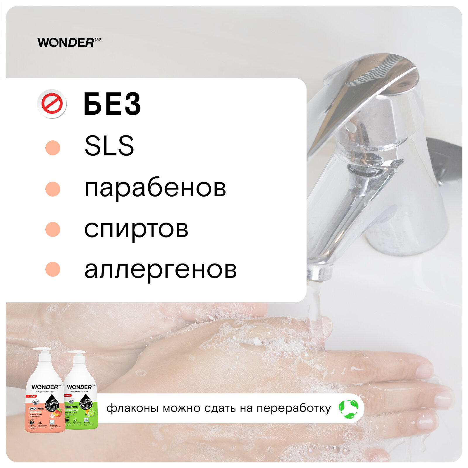 WONDER LAB Экогель для мытья рук и умывания Бергамот и мандарин, 540 мл
