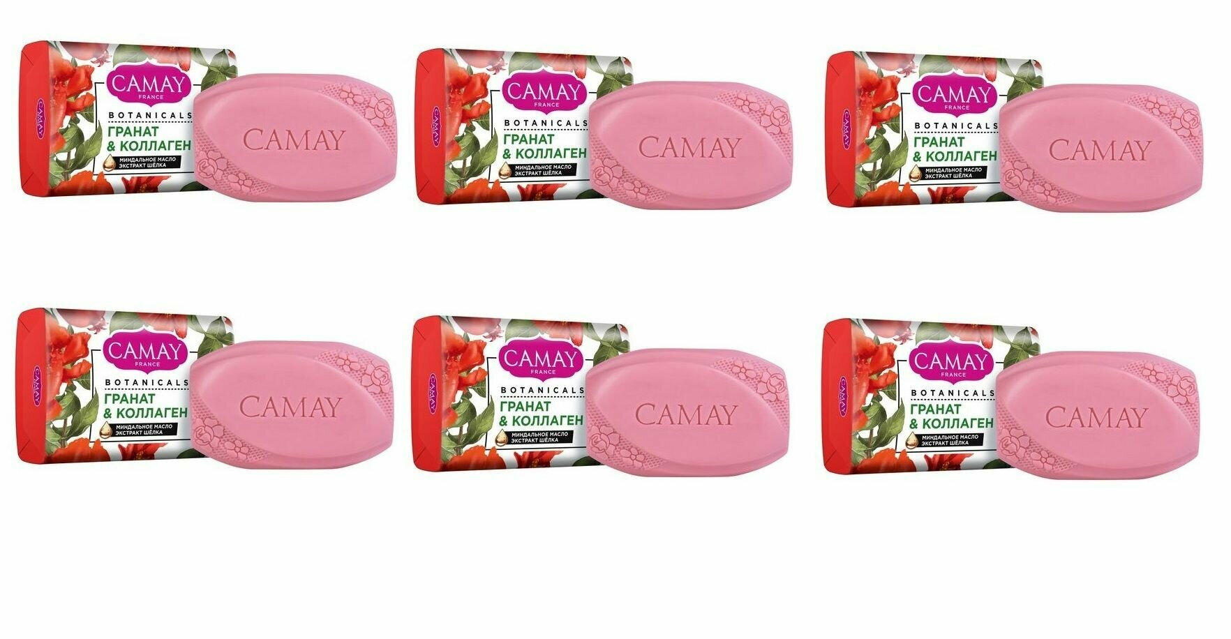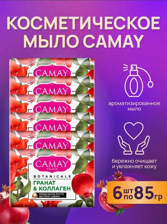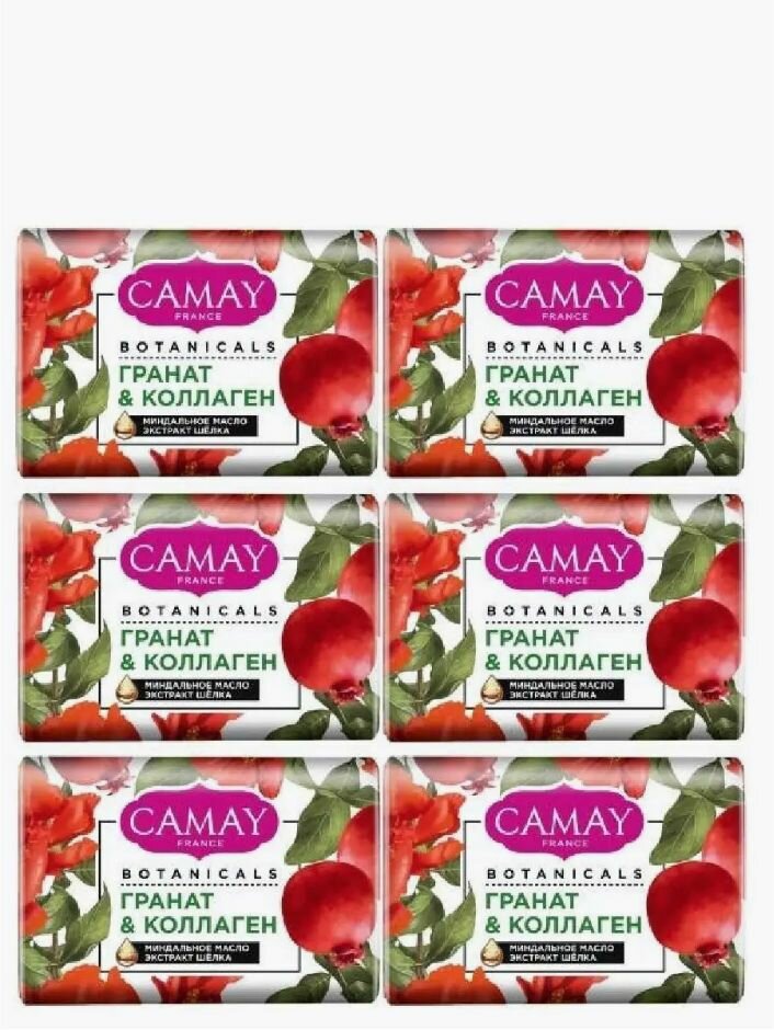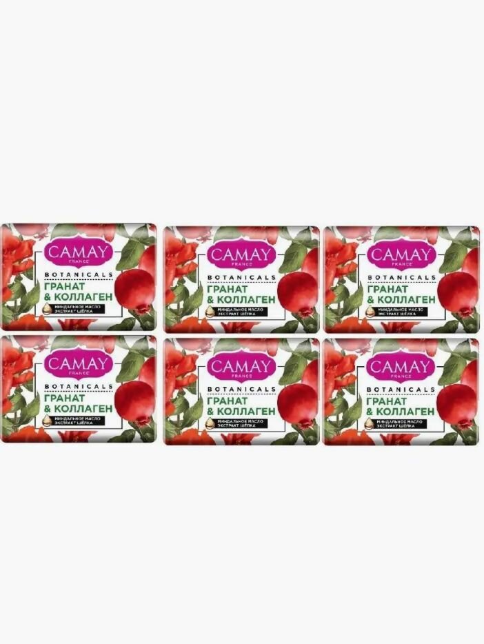 CAMAY / Камей Мыло туалетное твердое Botanicals / Гранат и коллаген, набор 6 шт. по 85 г. интересное: