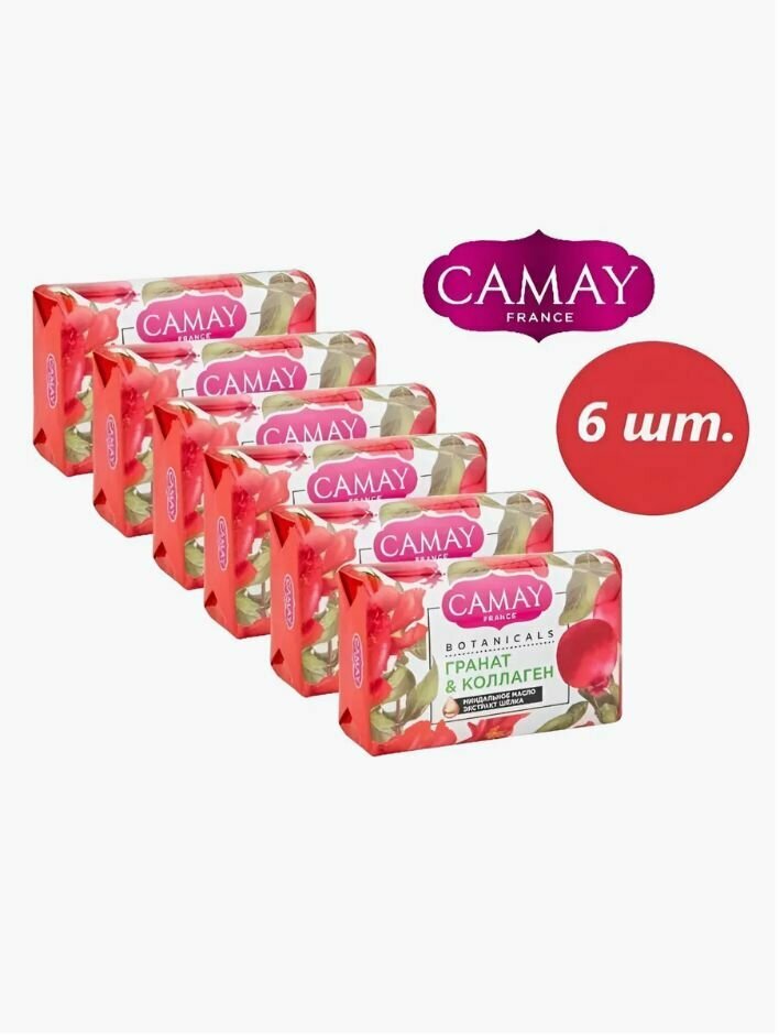 Купить CAMAY / Камей Мыло туалетное твердое Botanicals / Гранат и коллаген, набор 6 шт. по 85 г.
