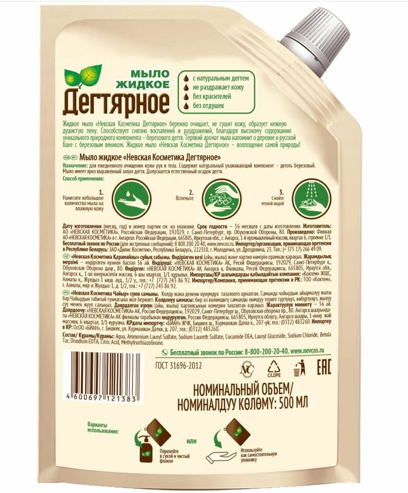 Мыло жидкое для рук и тела Невская Косметика Дегтярное, 500 мл (дой-пак)