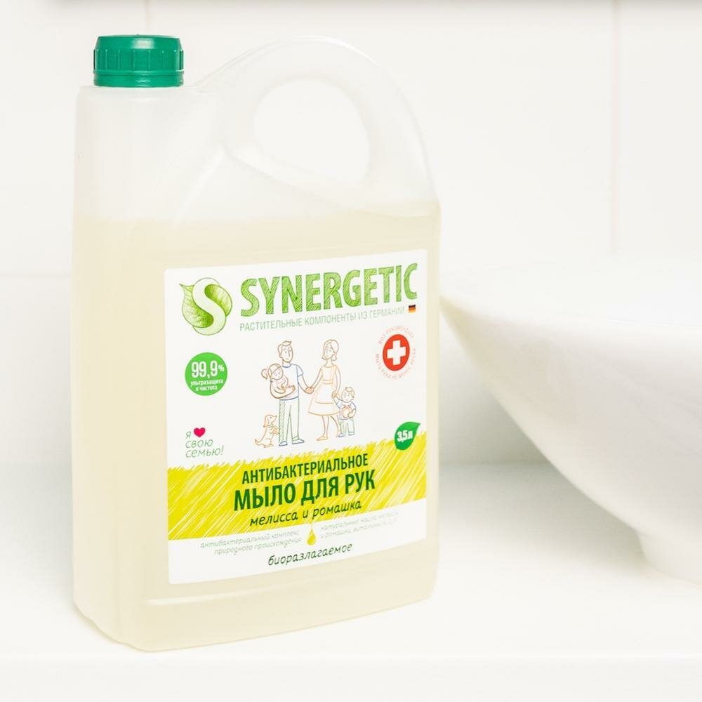 Купить Мыло жидкое Synergetic Антибактериальное Мелисса и ромашка 3,5л