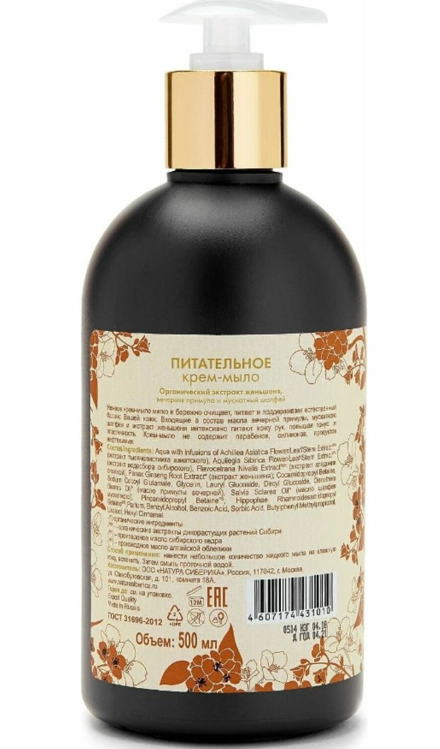 Жидкое крем мыло для рук Natura Siberica питательное с экстрактами женьшеня, вечерней примулы и шалфея 500 мл