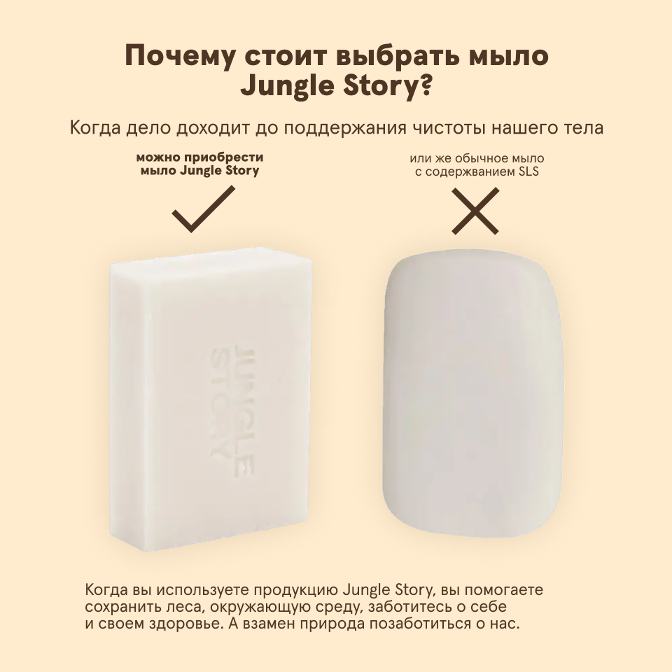 Мыло твердое кокосовое для тела и волос Jungle Story с миндалем интересное: