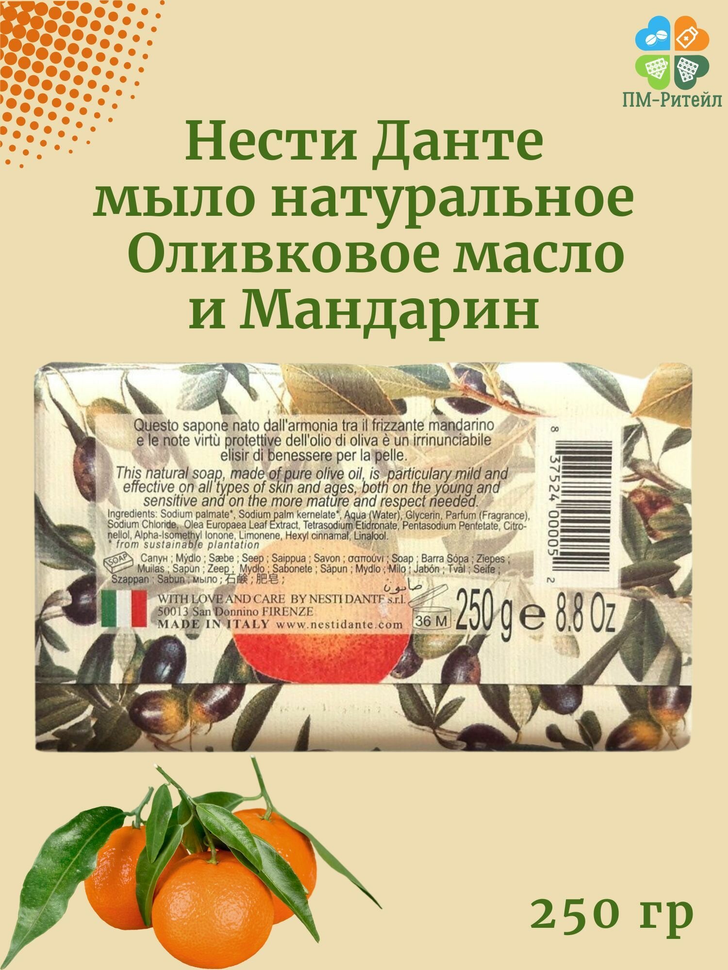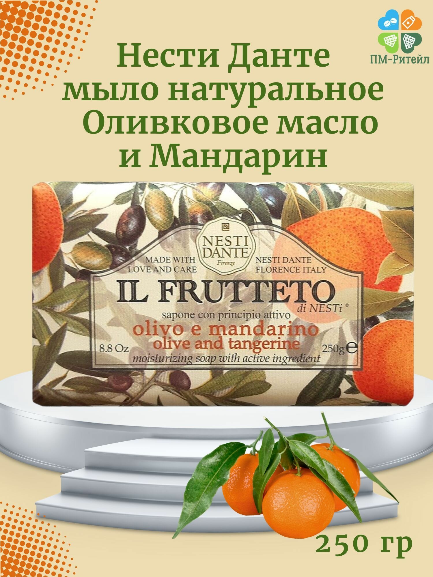 Мыло твердое туалетное оливковое масло и мандарин IL Frutteto Nesti Dante/Нести Данте 250г