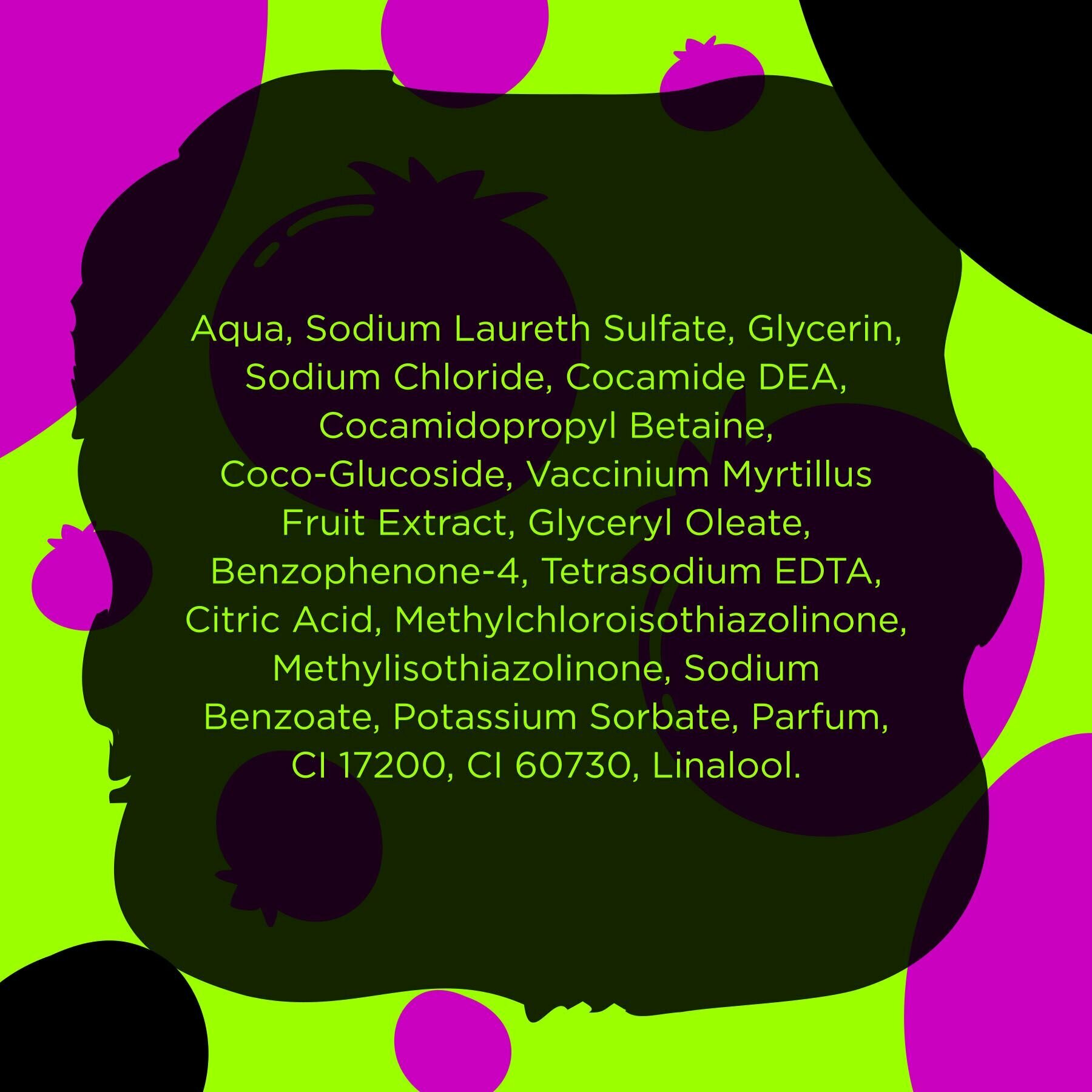 | Состав | Aqua, Sodium Laureth Sulfate, Glycerin, Sodium Chloride, Cocamide DEA, Cocamidopropyl Betaine, Coco-Glucoside, Theobroma Cacao Extract, Glyceryl Oleate, Tetrasodium EDTA, Propanediol, Citric Acid, Methylchloroisothiazolinone, Methylisothiazolinone, Sodium Benzoate, Potassium Sorbate, Parfum, CI 19140, CI 42090, CI 14720, CI 15985, CI 16255. |