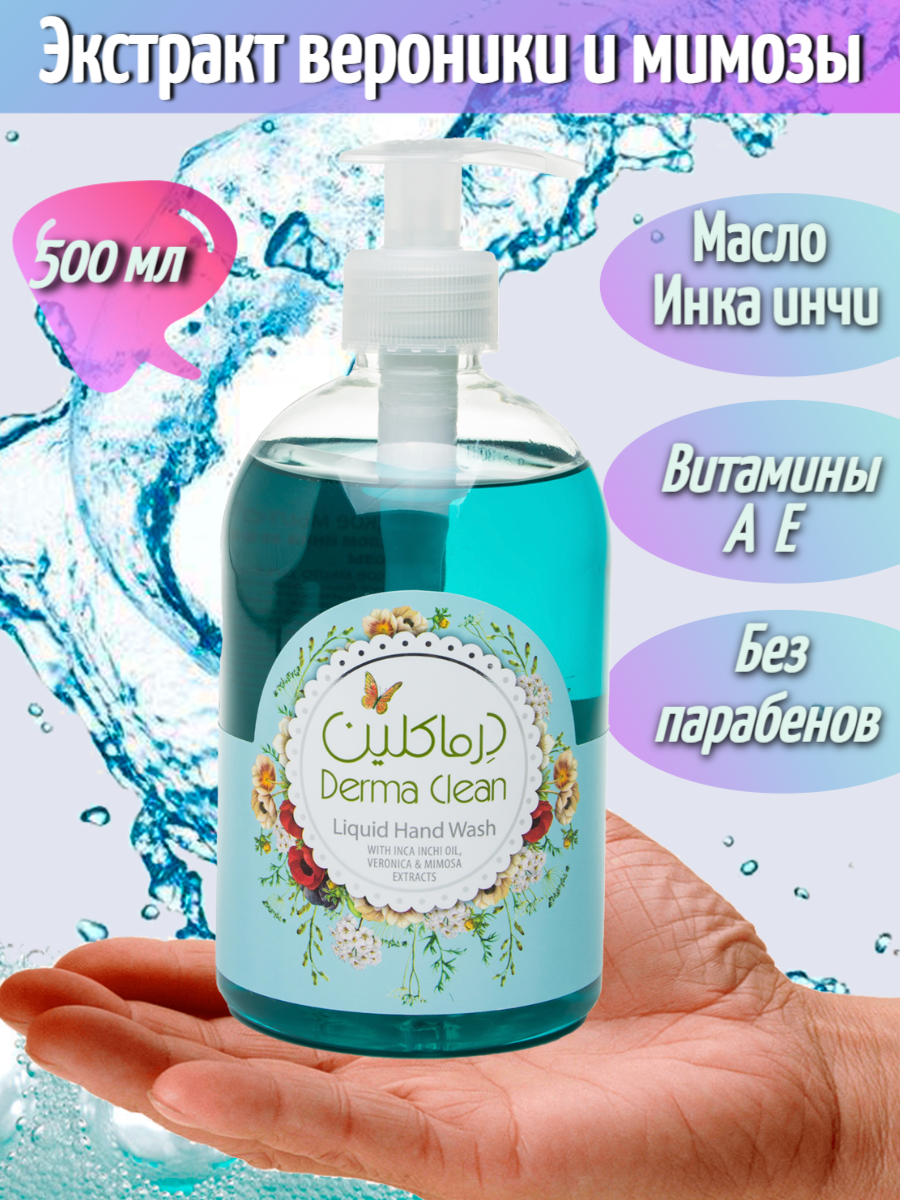 Жидкое мыло Derma Clean для всех типов кожи с экстрактом вероники и мимозы интересное: