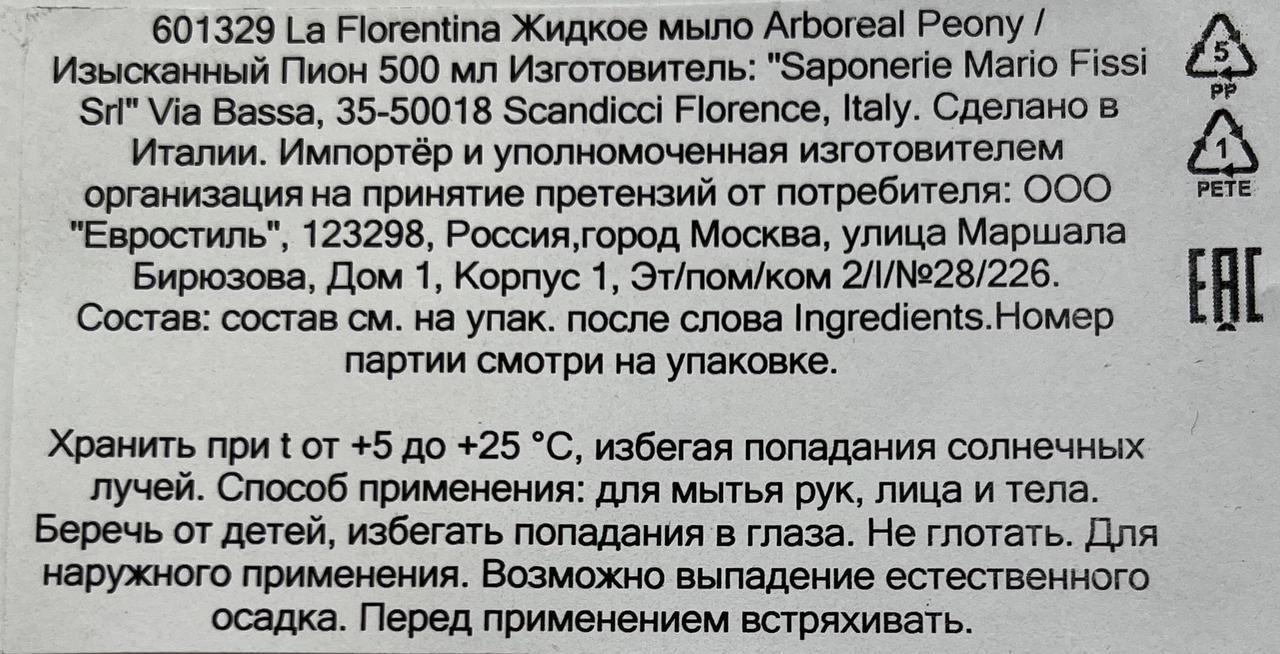 Жидкое мыло La Florentina Arboreal Peony Изысканный Пион 500 мл 8003085710262 интересное: