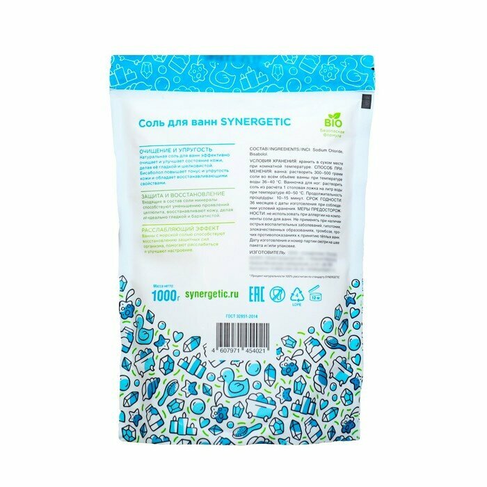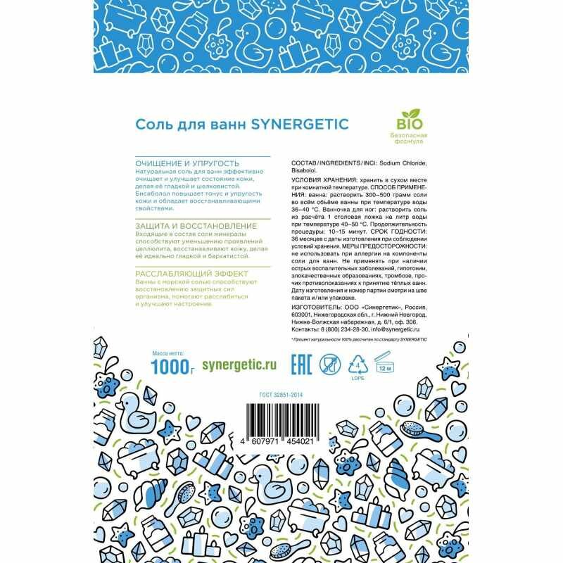 | Дополнительная информация | Synergetic Соль для ванн Relax & Skin Tone, 1 кг |